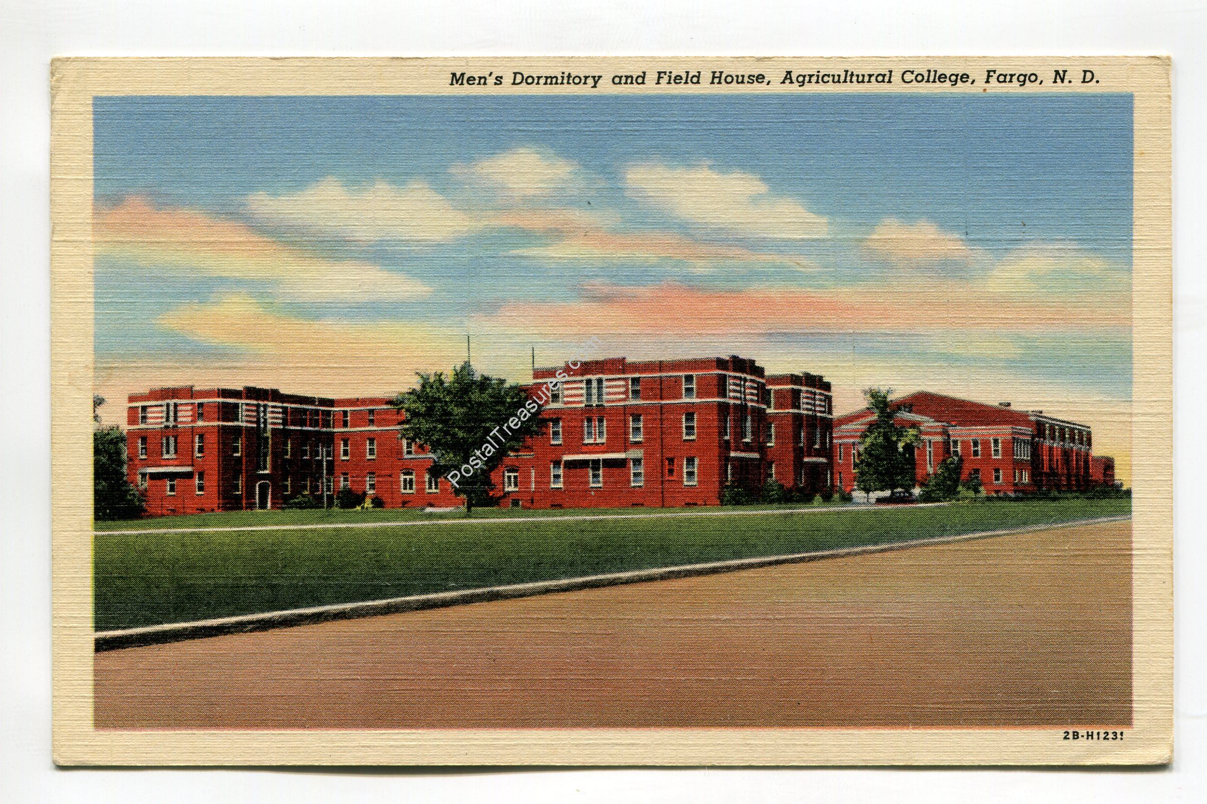 Mens Dormitory and Field House Agricultural College Fargo North Dakota postcard