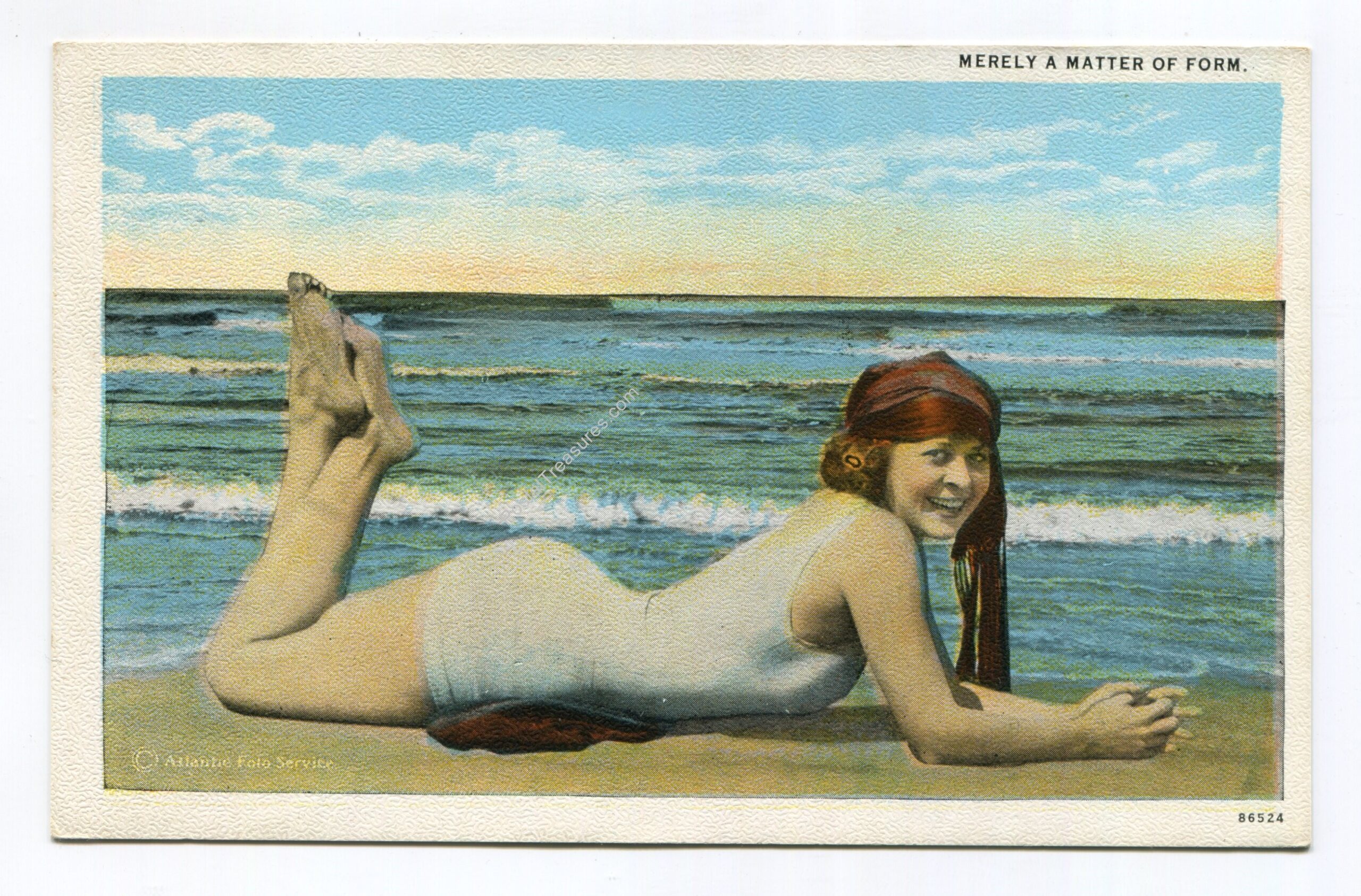 Merely a matter of Form – Female in swimsuit lying on beach postcard