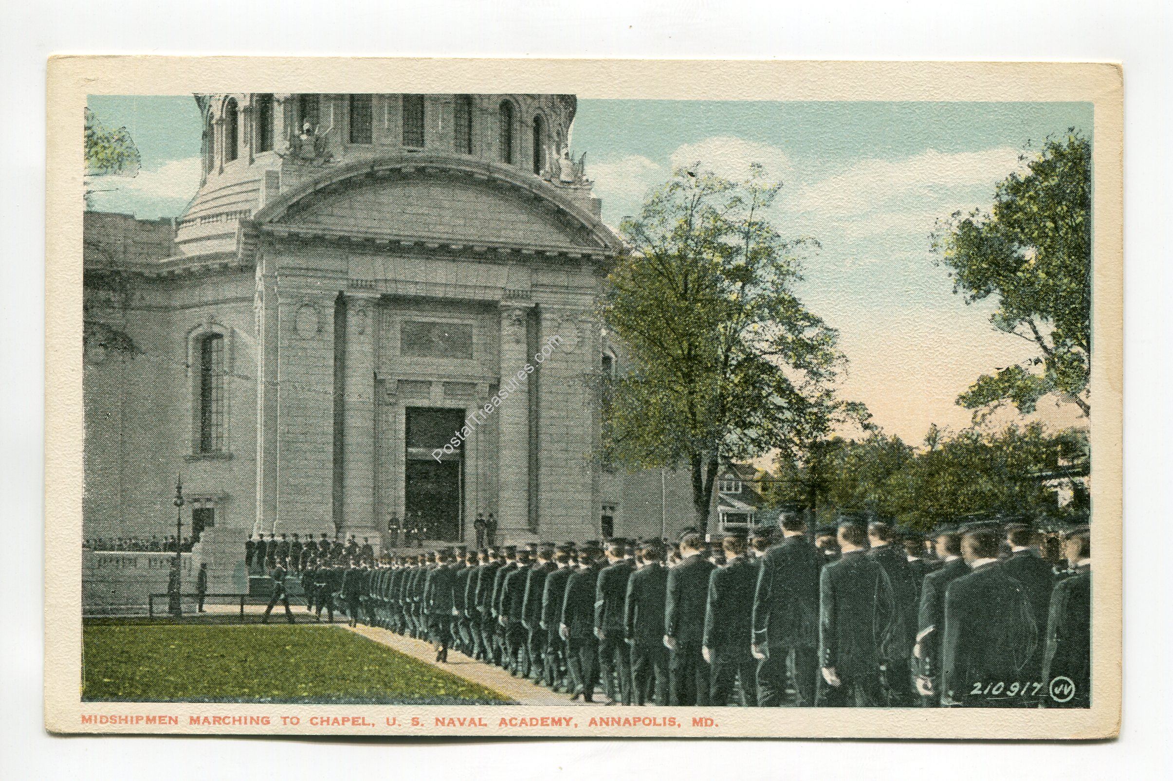 Midshipmen marching to Chapel US Naval Academy Annapolis Maryland postcard