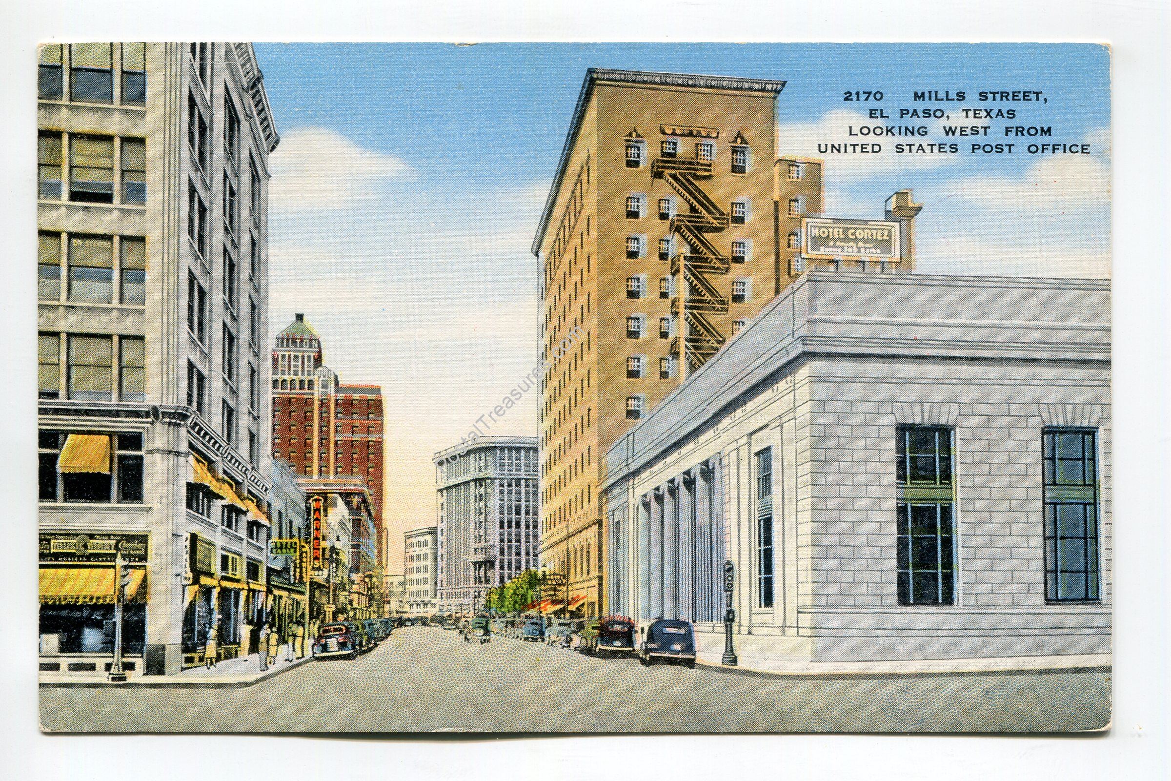Mills Street looking west from United States Post Office El Paso Texas postcard