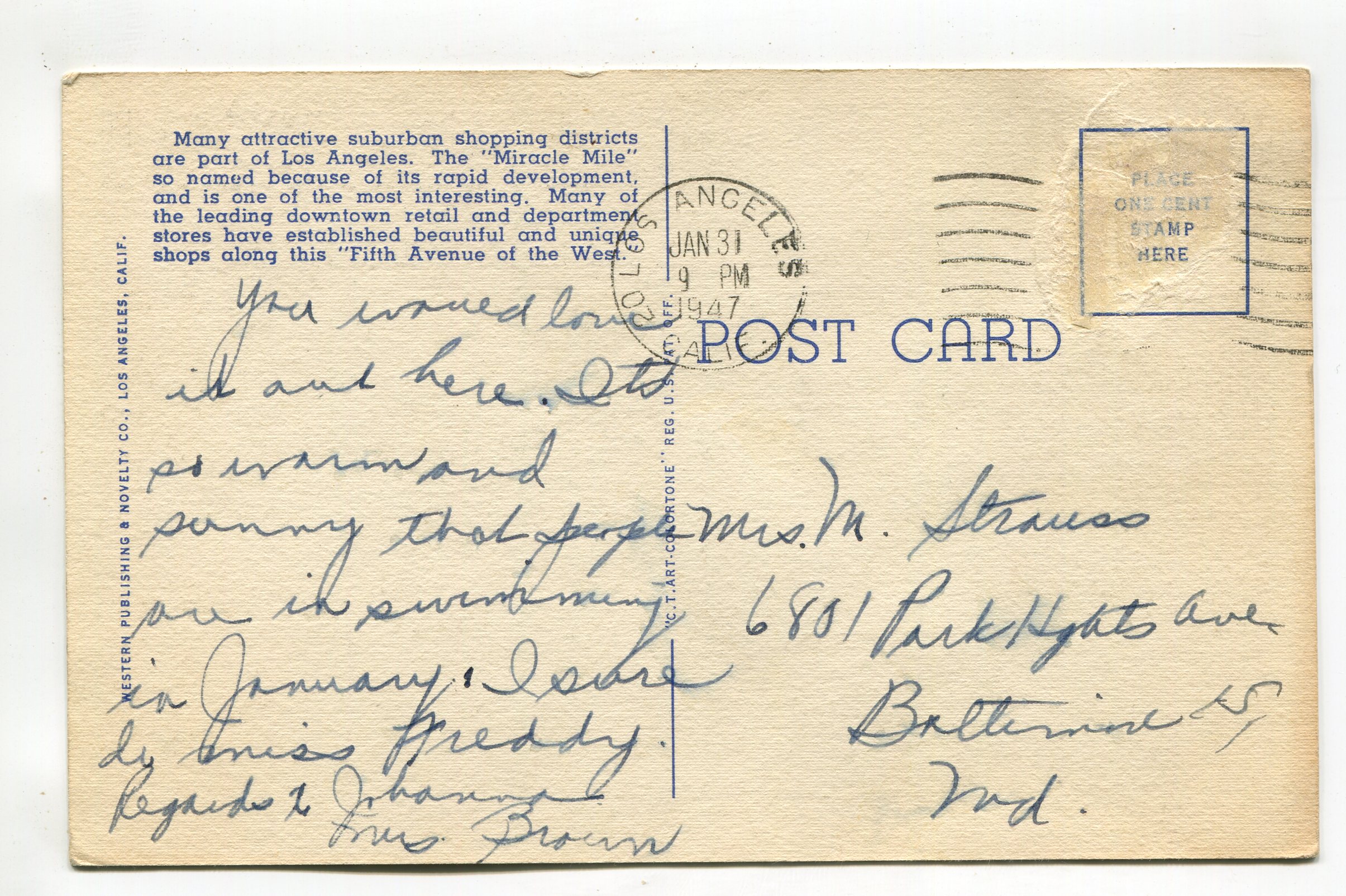 Miracle Mile Wilshire Boulevard Los Angeles California postcard