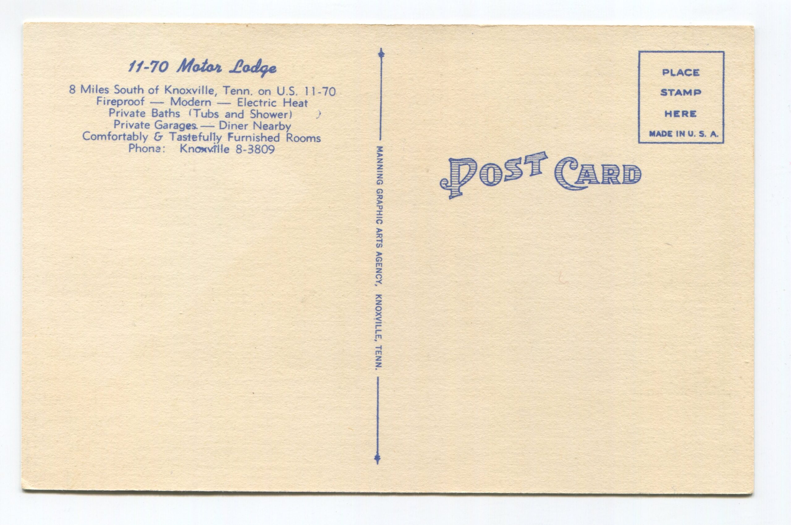 Motor Lodge 8 Miles South of Knoxville Tennessee on US 11-70 postcard
