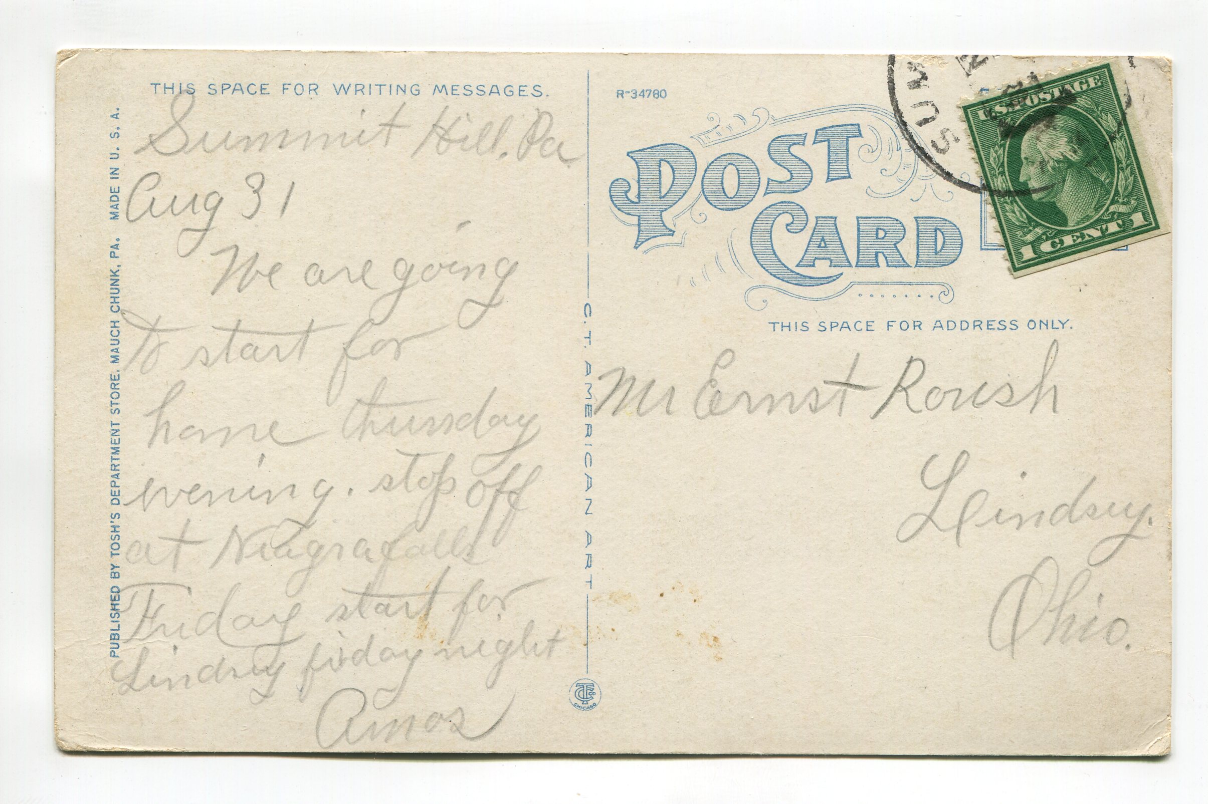 Mount Jefferson Plane Switch Back Railroad Mauch Chunk Pennsylvania postcard