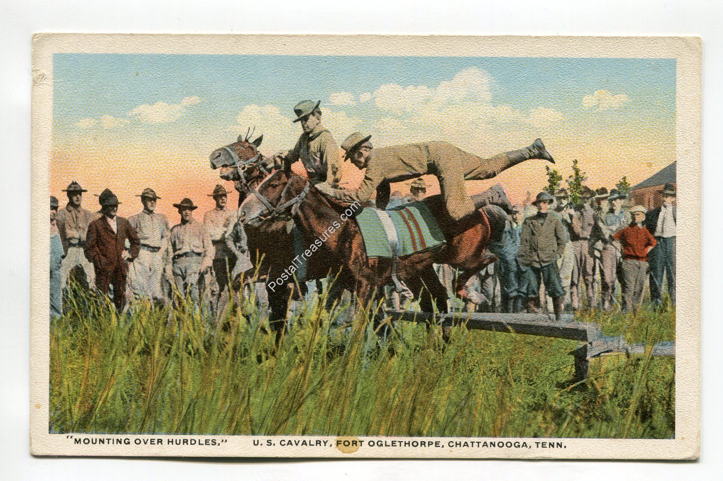Mounting over Hurdles US Cavalry Fort Oglethorpe Chattanooga Tennessee postcard