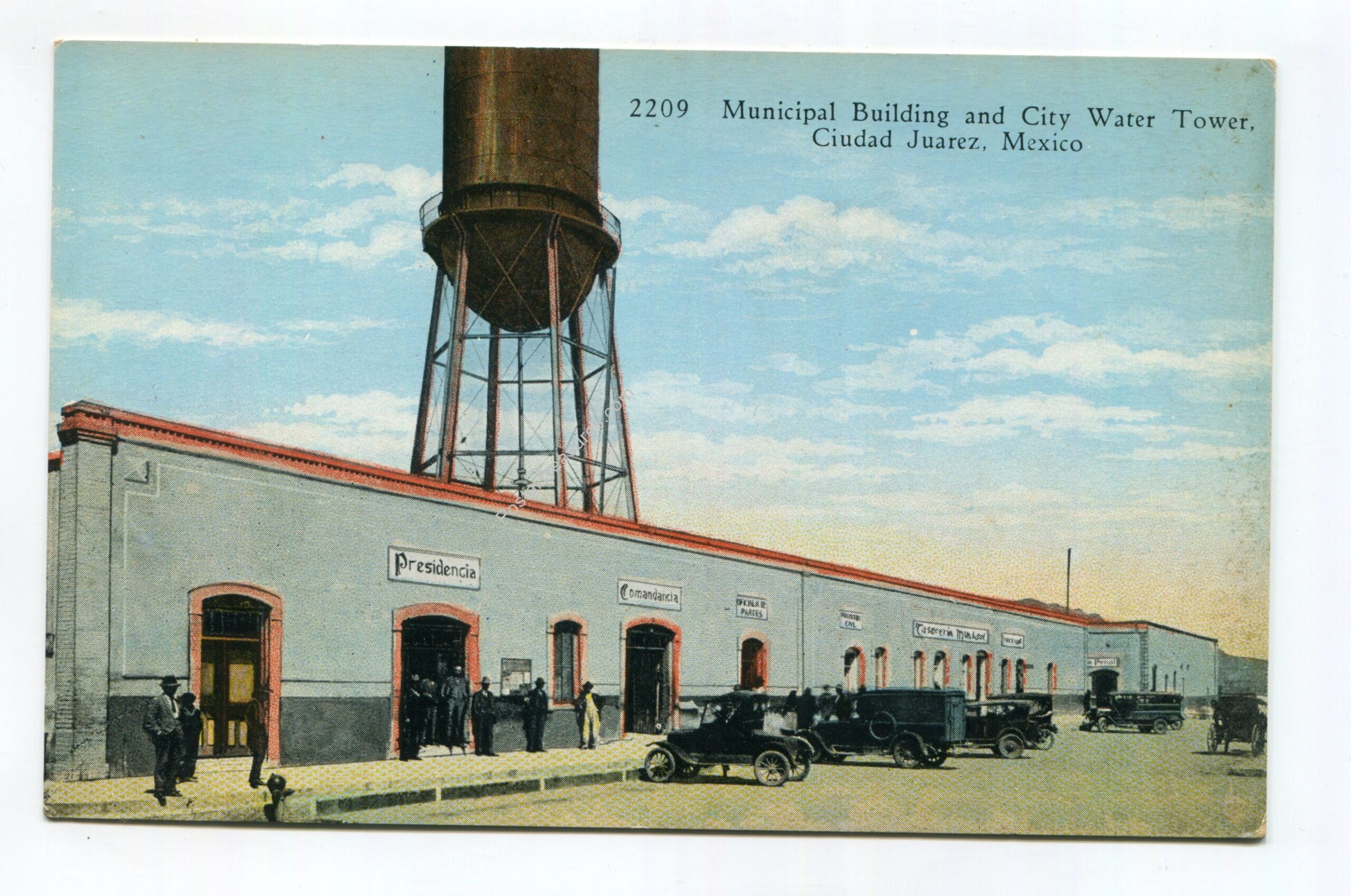 Municipal Building and City Water Tower Ciudad Juarez Mexico postcard