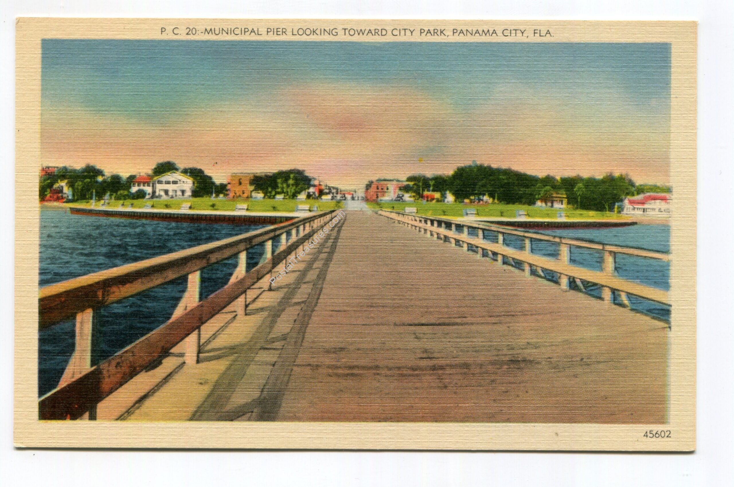 Municipal Pier looking toward City Park Panma City Florida postcard