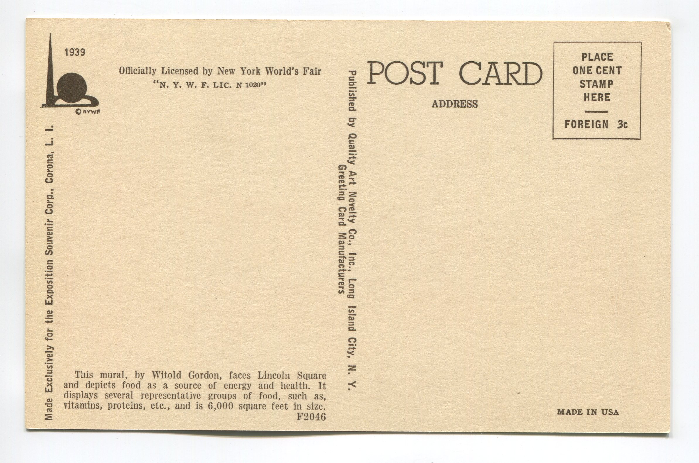 Mural Painting on Food Building No 3 New York Worlds Fair postcard