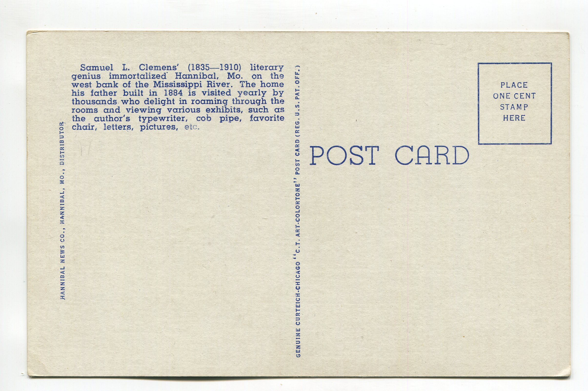 Museum and Boyhood Home of Mark Twain Hannibal Missouri postcard