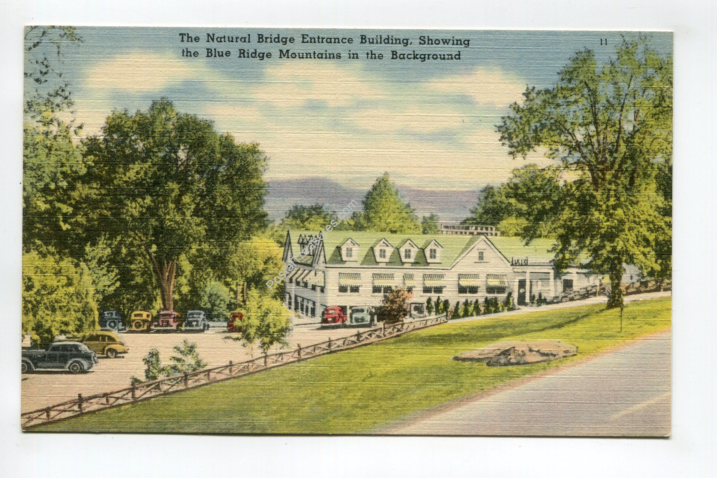Natural Bridge Entrance Building Showing Blue Ridge Mountains in the Background Virginia postcard