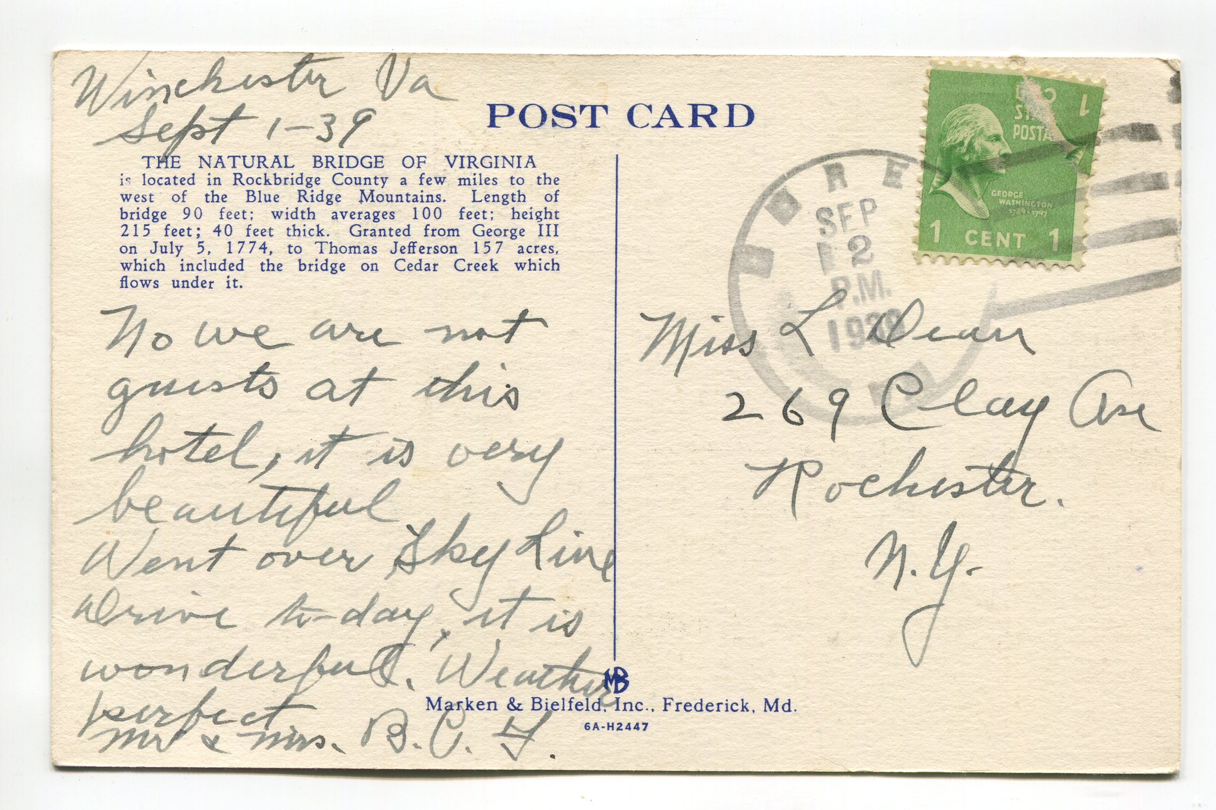 Natural Bridge Hotel Natural Bridge Virginia postcard