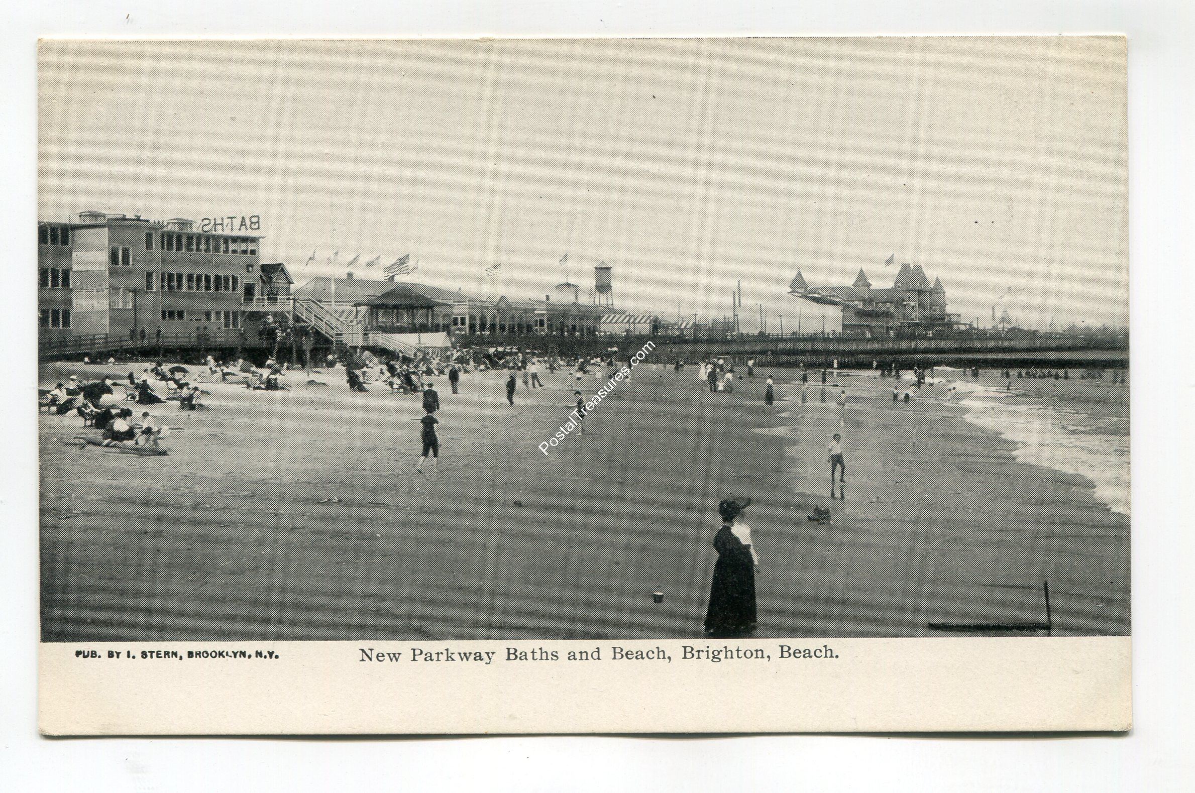 New Parkway Baths and Beach Brighton Beach New York postcard