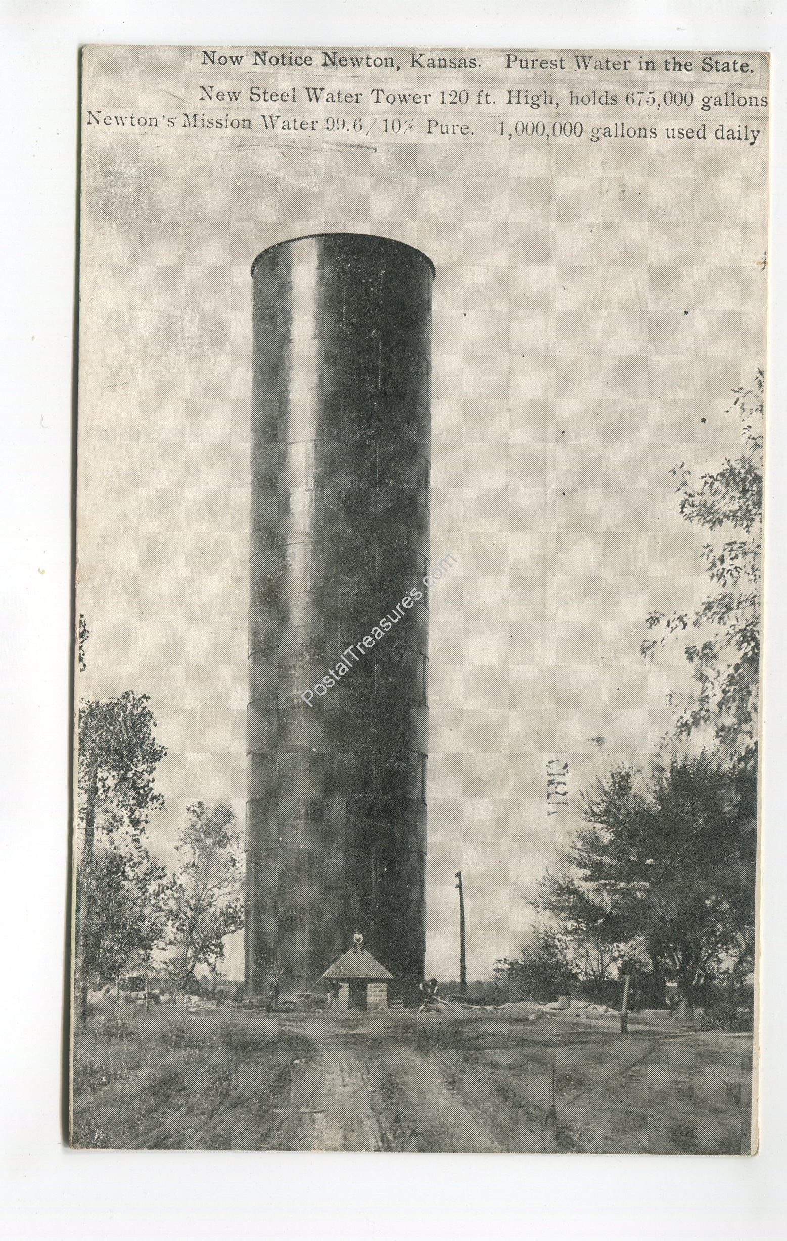 New Steel Water Tower 120ft High Newton Kansas postcard