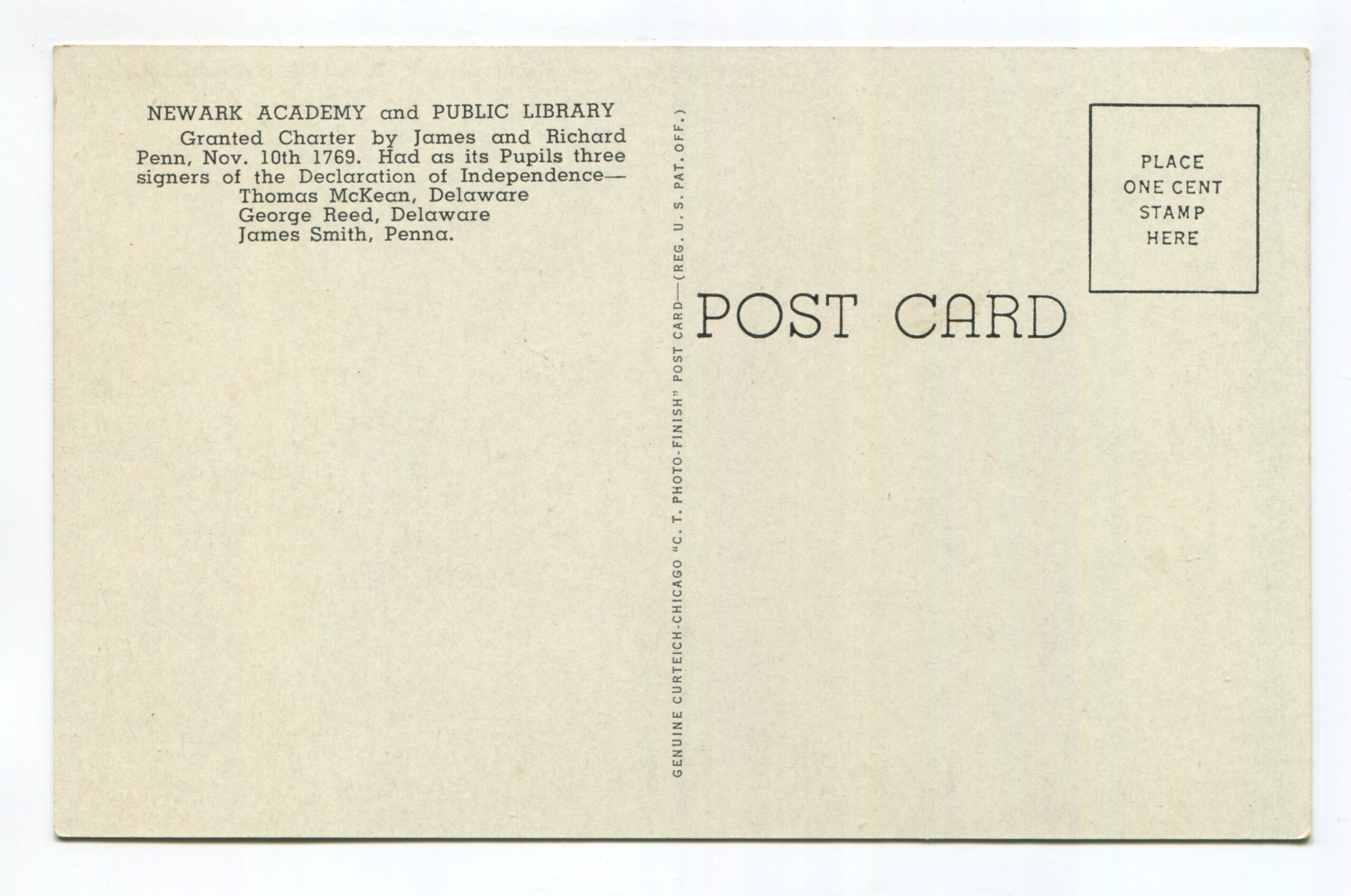 Newark Academy and Public Library Built 1769 Newark Delaware postcard