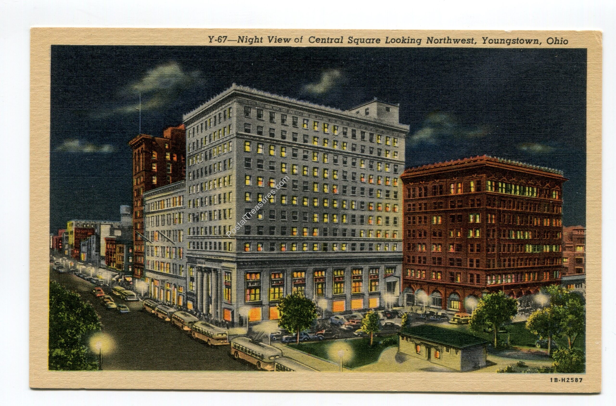 Night View of Central Square Looking Northwest Youngstown Ohio postcard