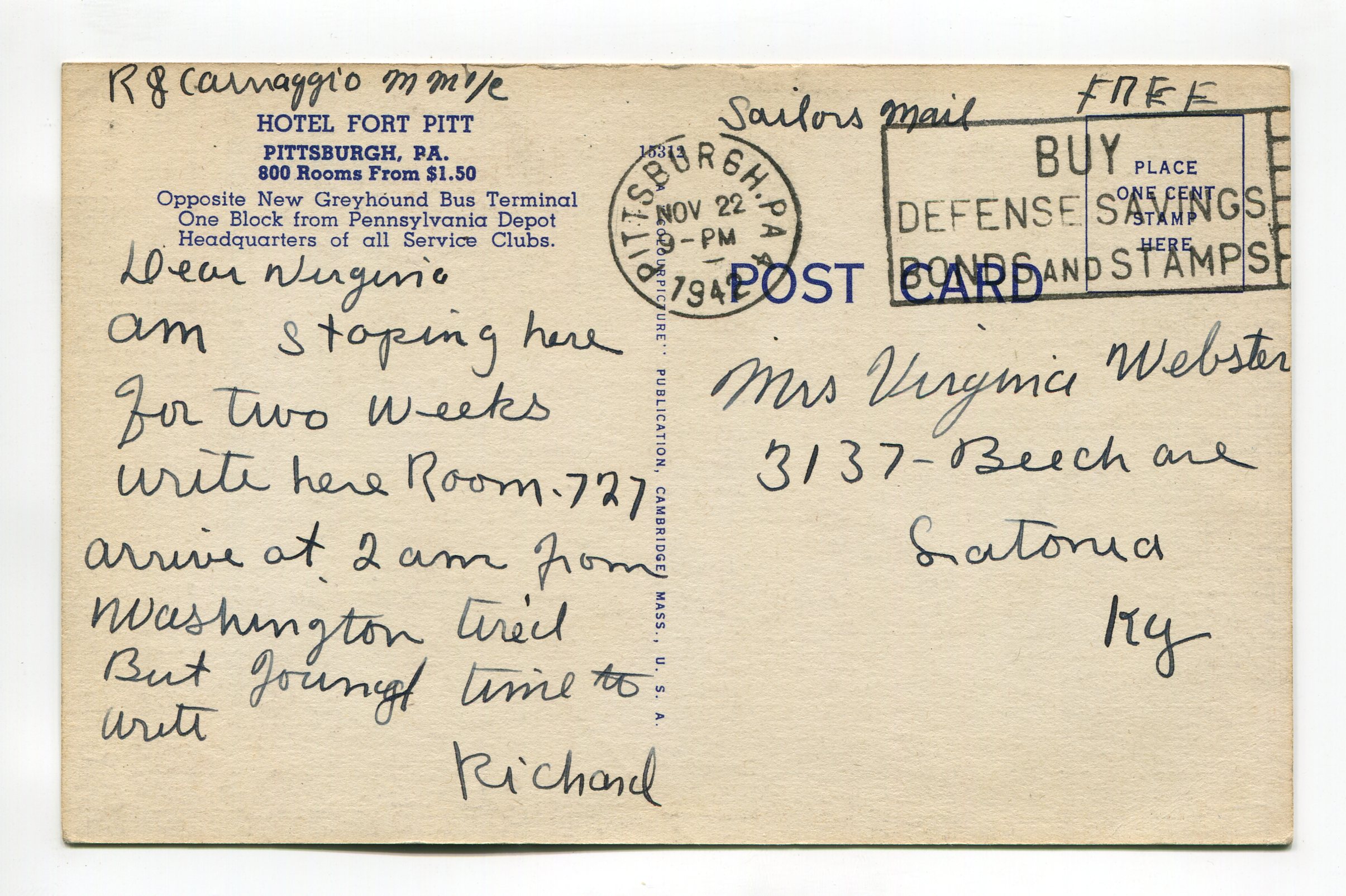 Norse Room Hotel Pitt – Pittsburgh Pennsylvania postcard