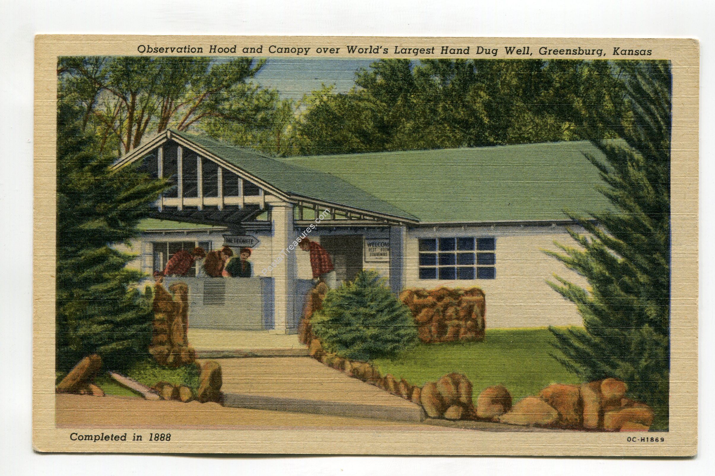 Observation Hood and Canopy over World’s largest hand dug well Greensburg Kansas postcard