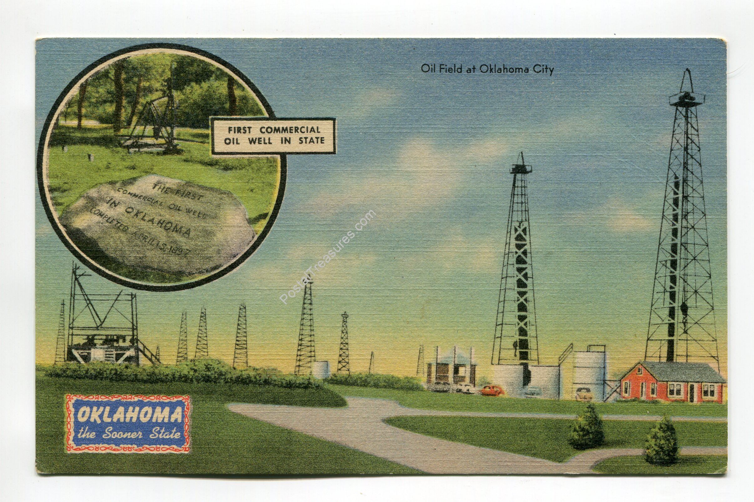 Oil Field at Oklahoma City first Commercial Oil Well in State postcard