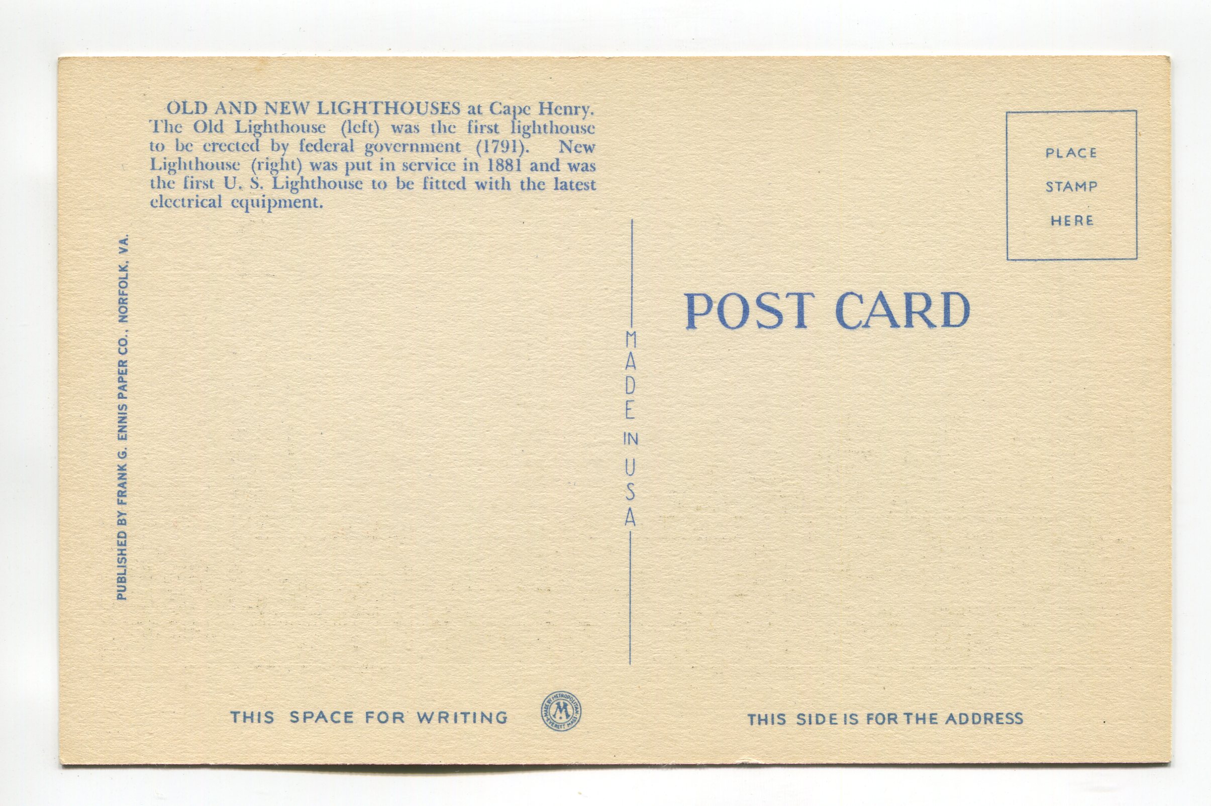 Old and New Lighthouse at Cape Henry Virginia postcard