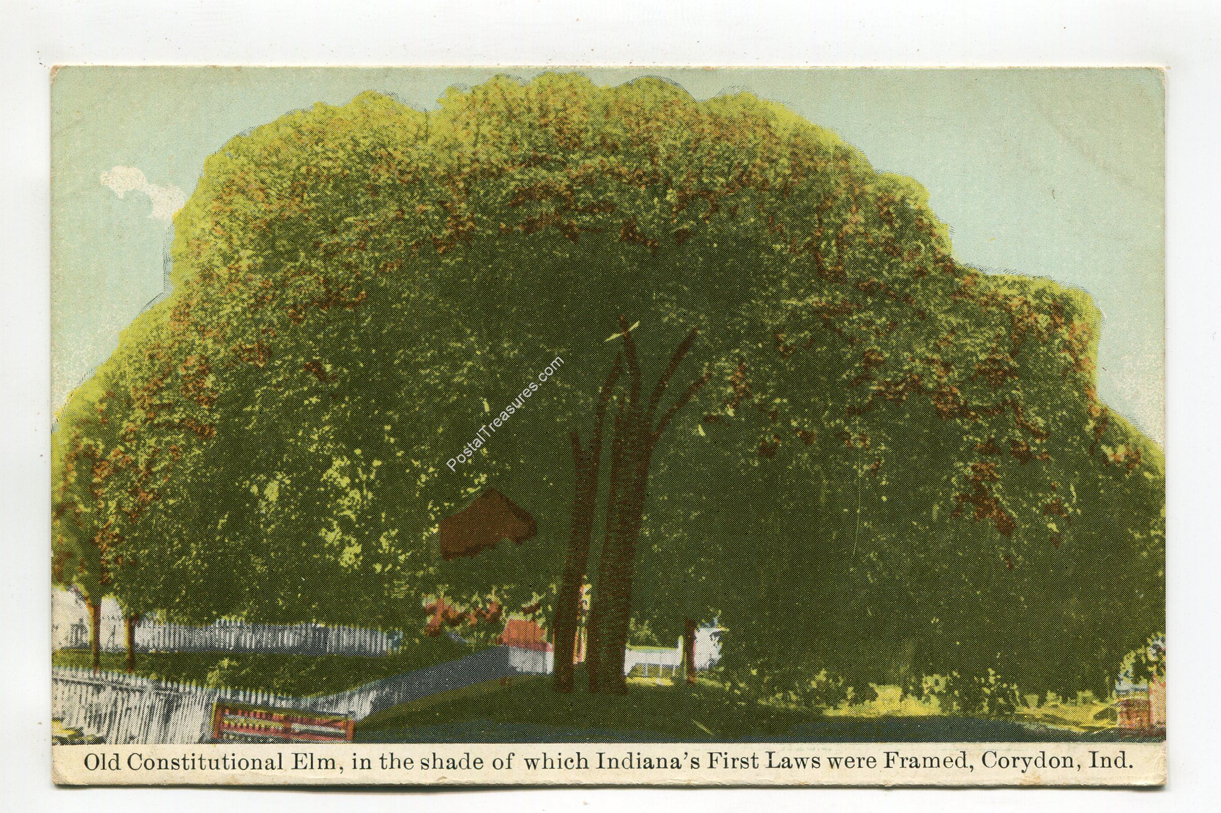 Old Constitutional Elm in the shade of which Indiana’s First Laws were Framed Corydon Indiana postcard