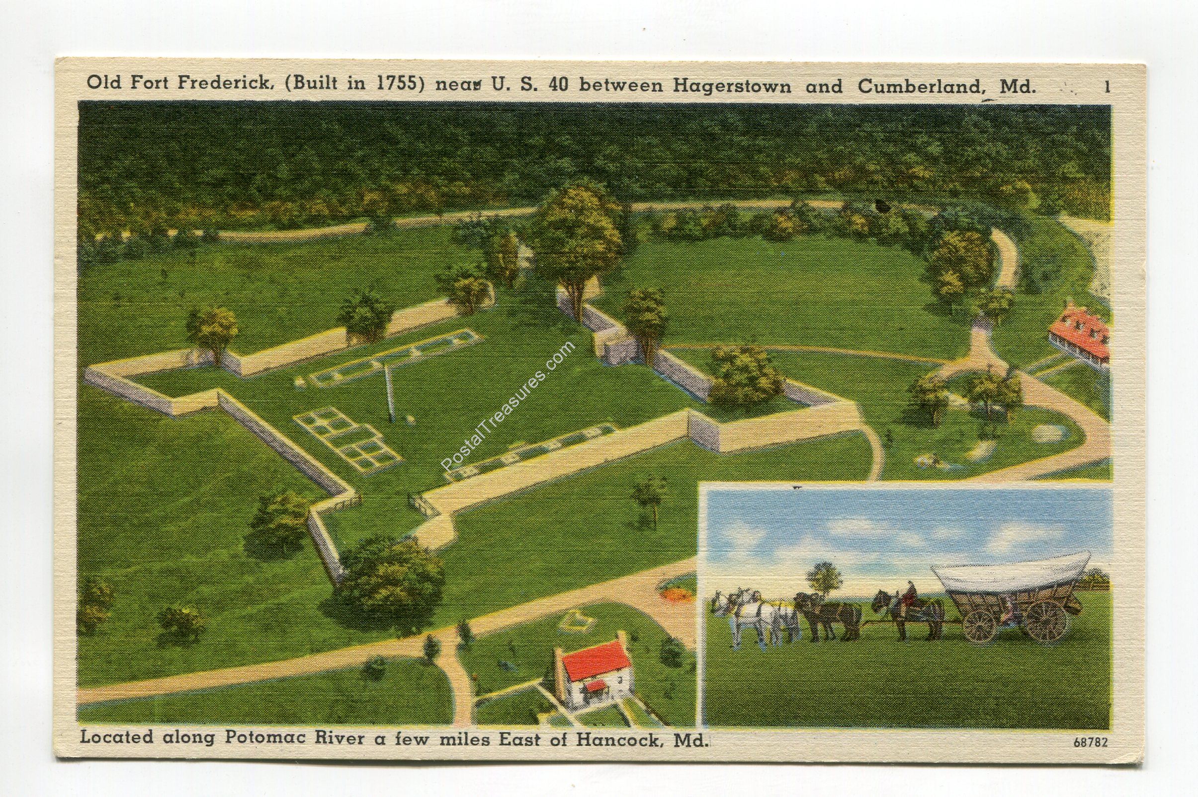 Old Fort Frederick (Built in 1755) near US 40 between Hagerstown and Cumberland Maryland postcard