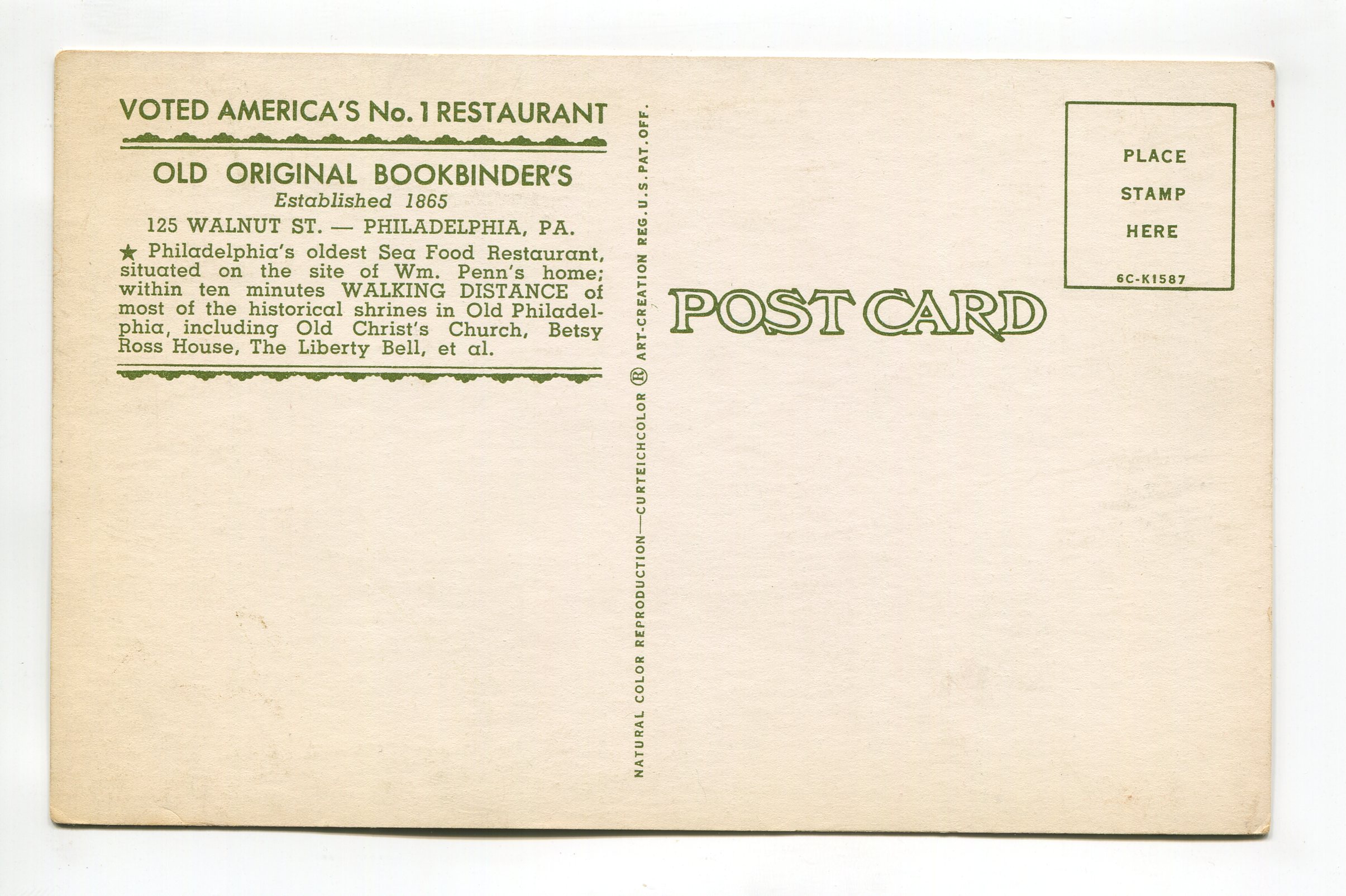 Old Original Bookbinder’s 125 Walnut Street Philadelphia postcard