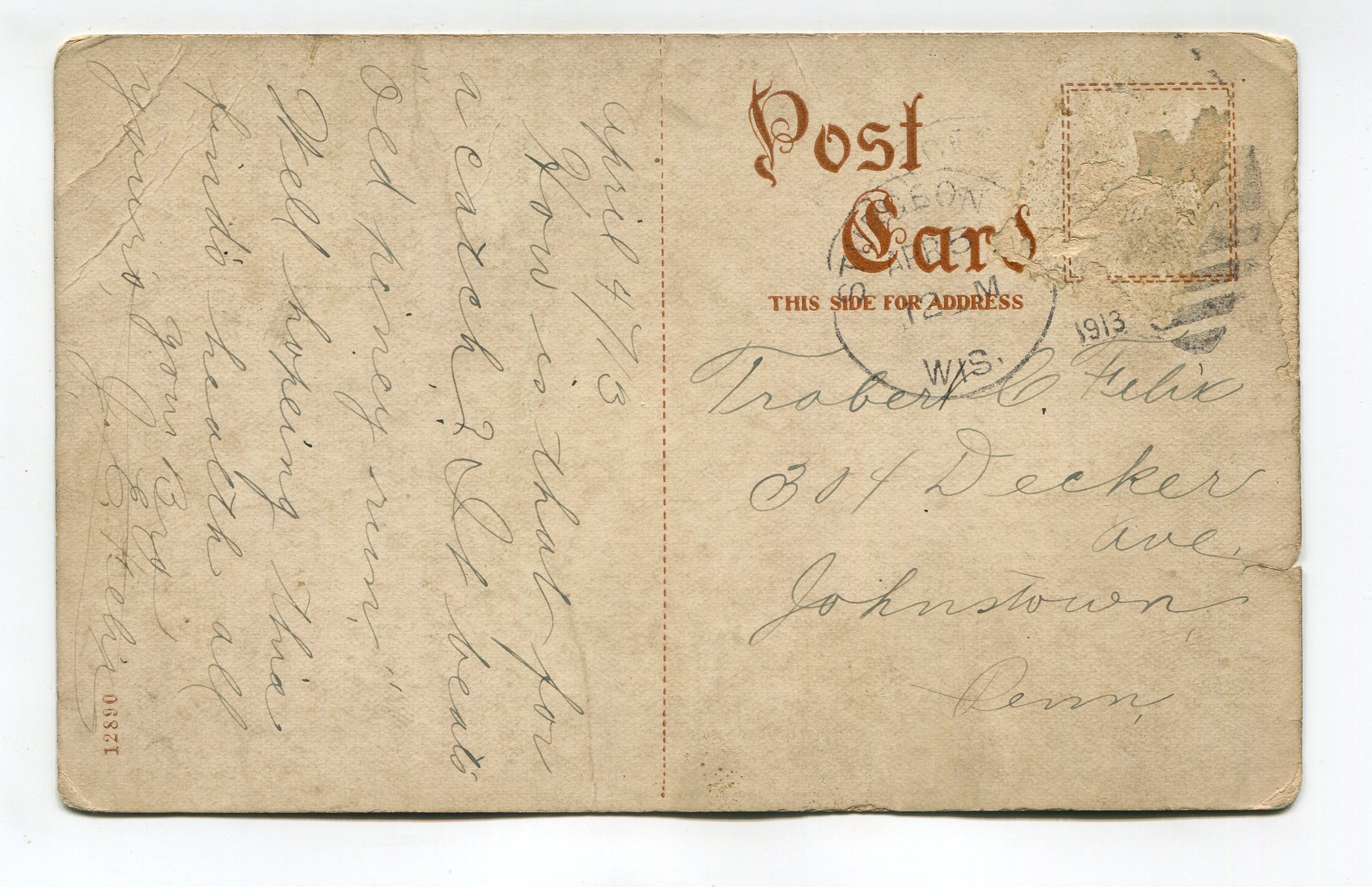 Condition – noticeable corner/edge wear, crease in corners, many creases (some heavy) visible throughout card, tear and damage in lower left edge, cancelation impression visible on card front, damage to card rear, marks on card front, soiling/marks
