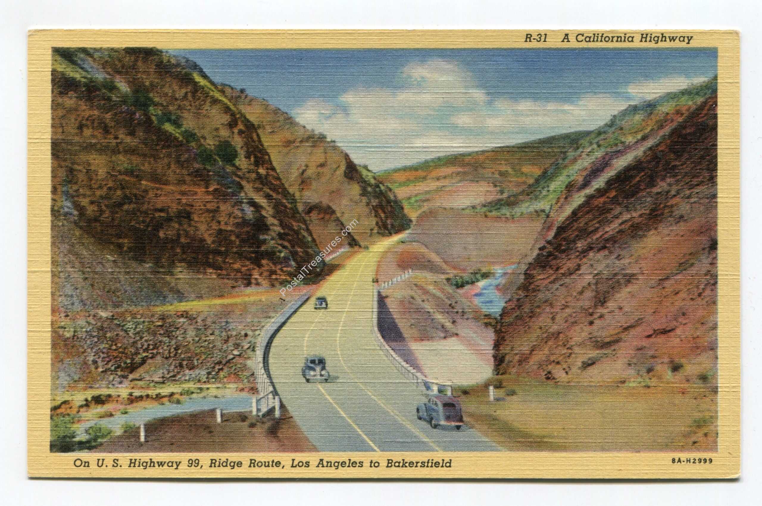 On US Highway 99 Ridge Route Los Angeles to Bakersfield California postcard
