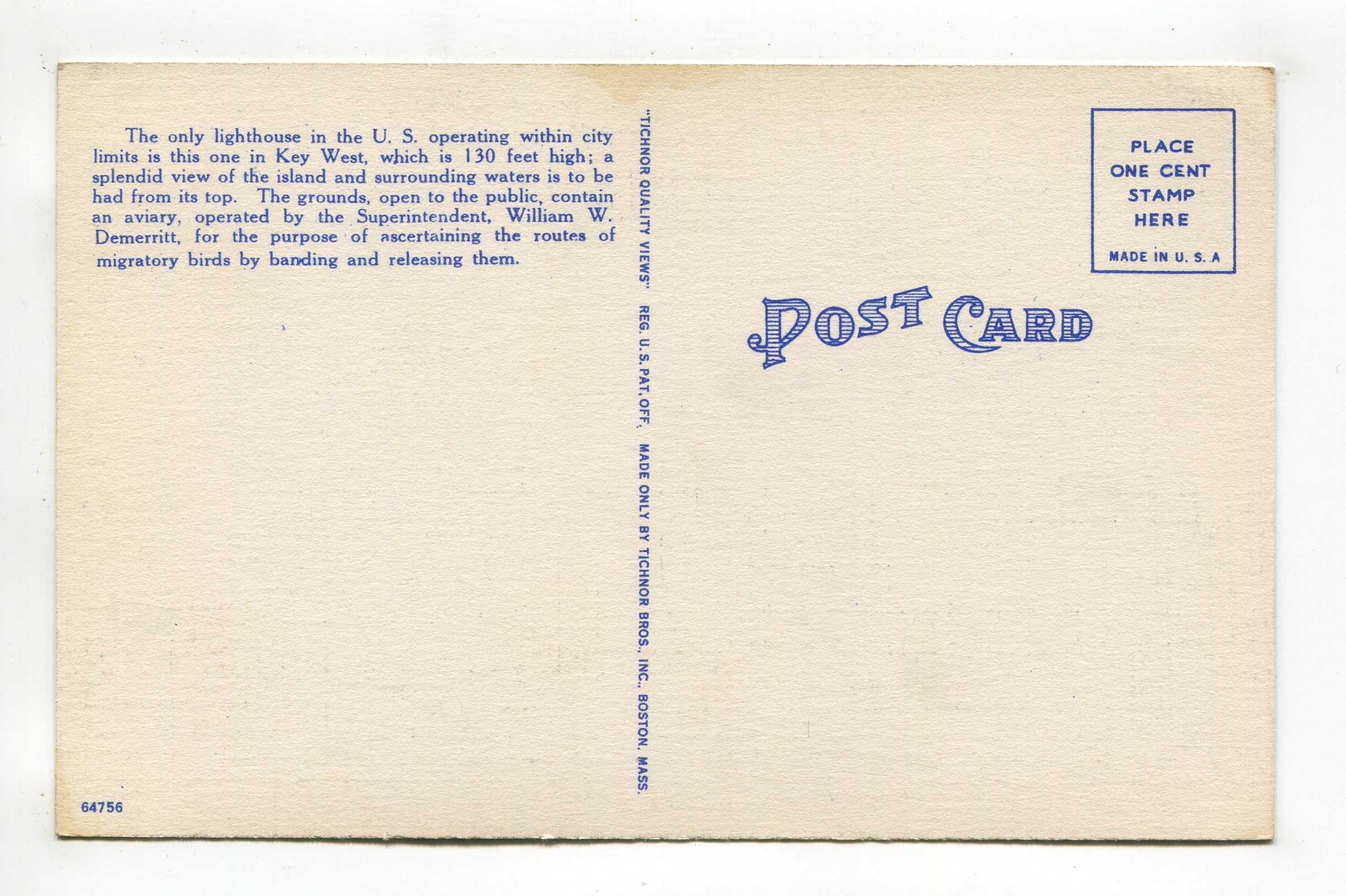The only Lighthouse in the United States entirely within City Limits Key West Florida postcard