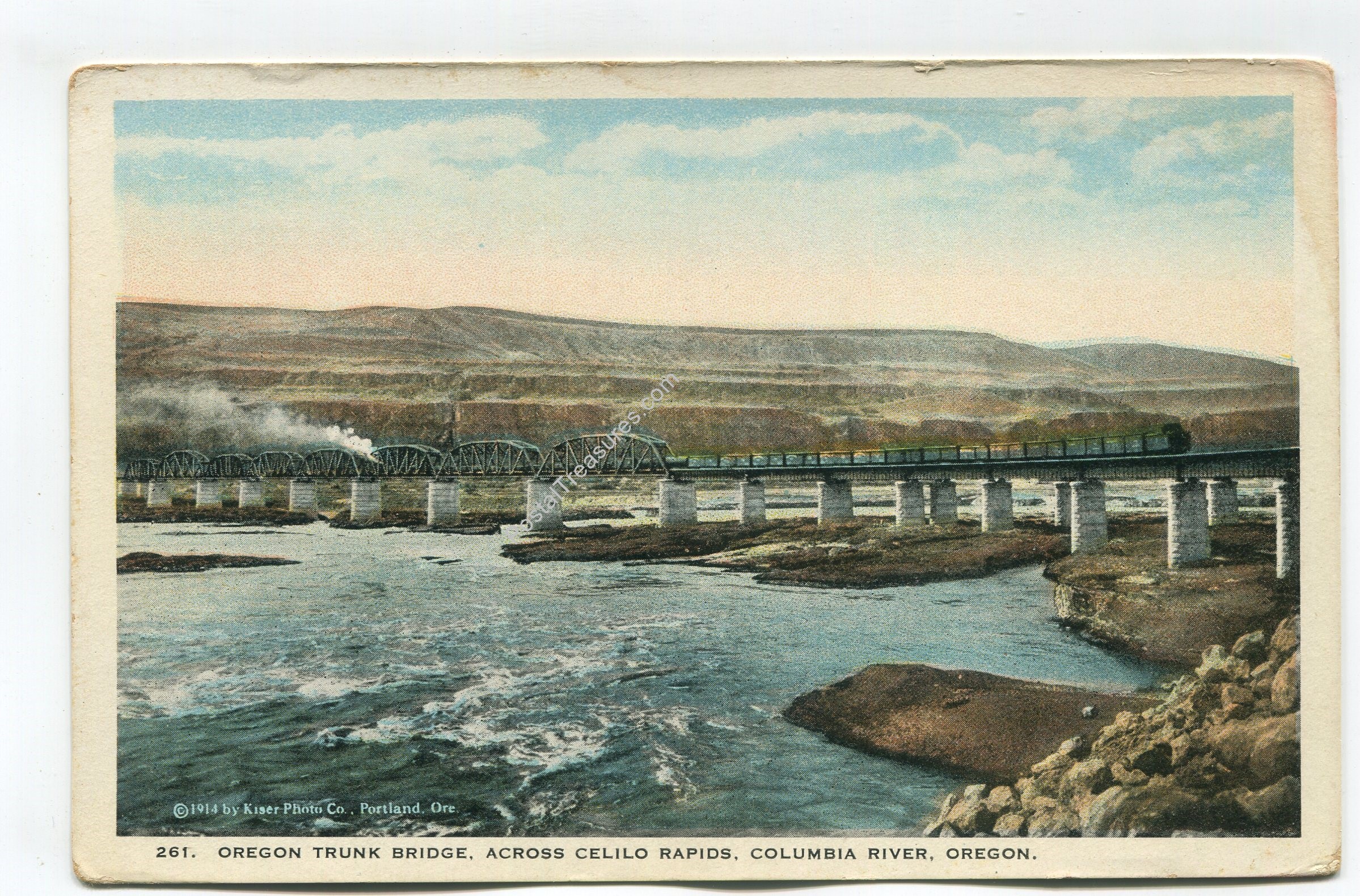 Oregon Trunk Bridge crossing Celilo Rapids Columbia River Oregon postcard