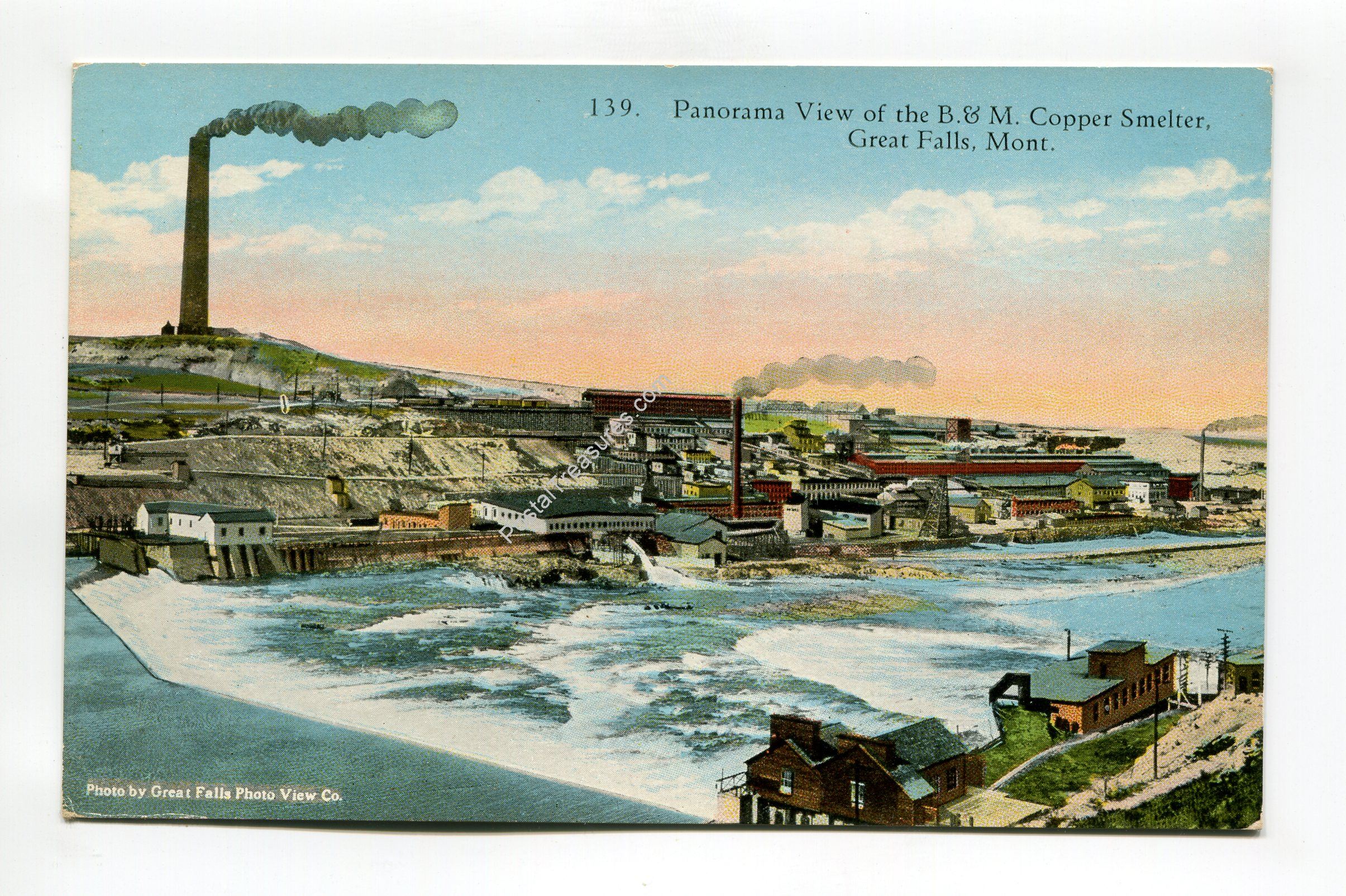 Panorama view of the B and M Copper Smelter Great Falls Montana postcard