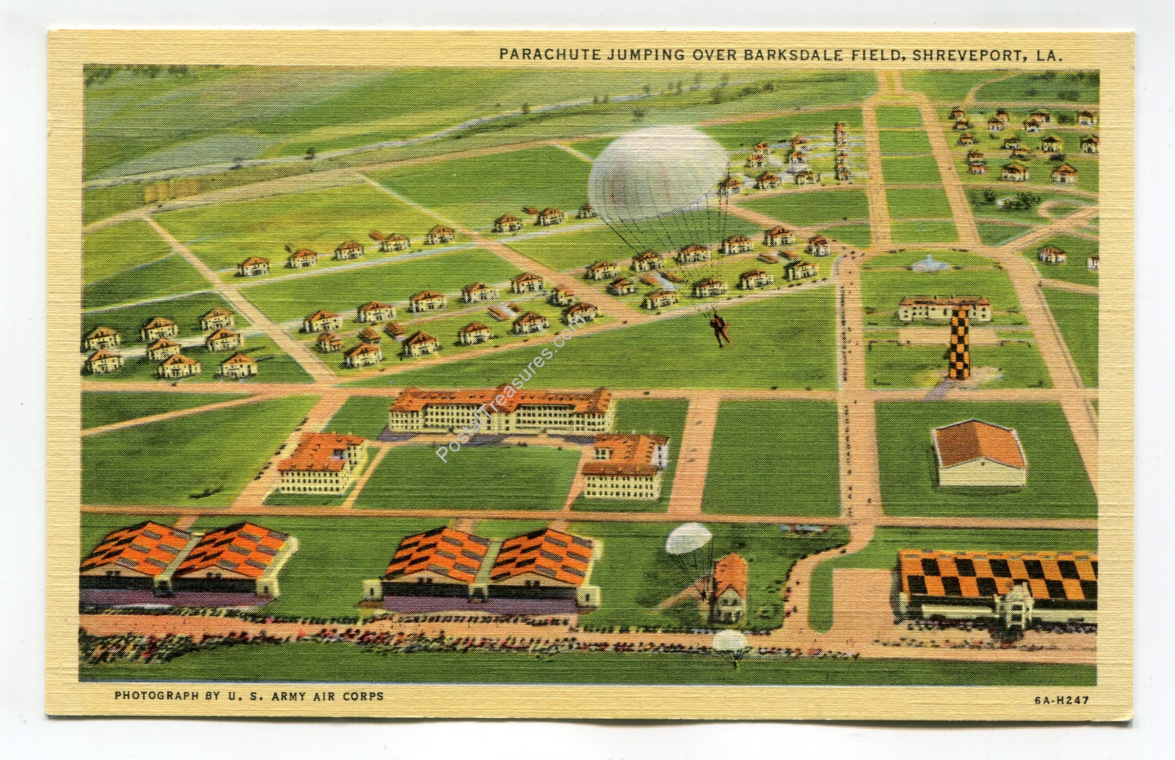 Parachute Jumping over Barksdale Field Shreveport Louisiana postcard