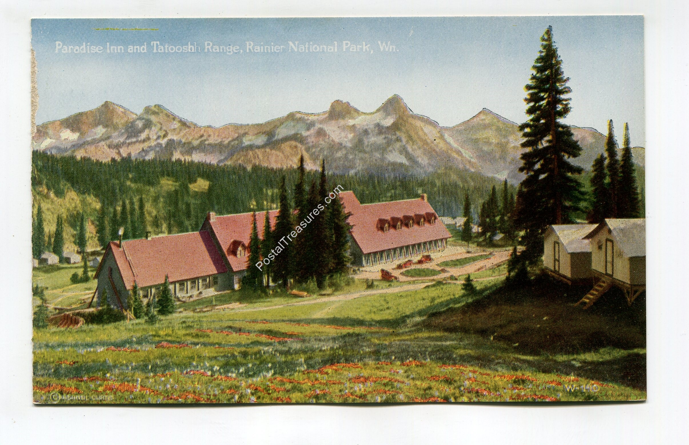 Paradise Inn and Tatoosh Range Ranier National Park Washington postcard