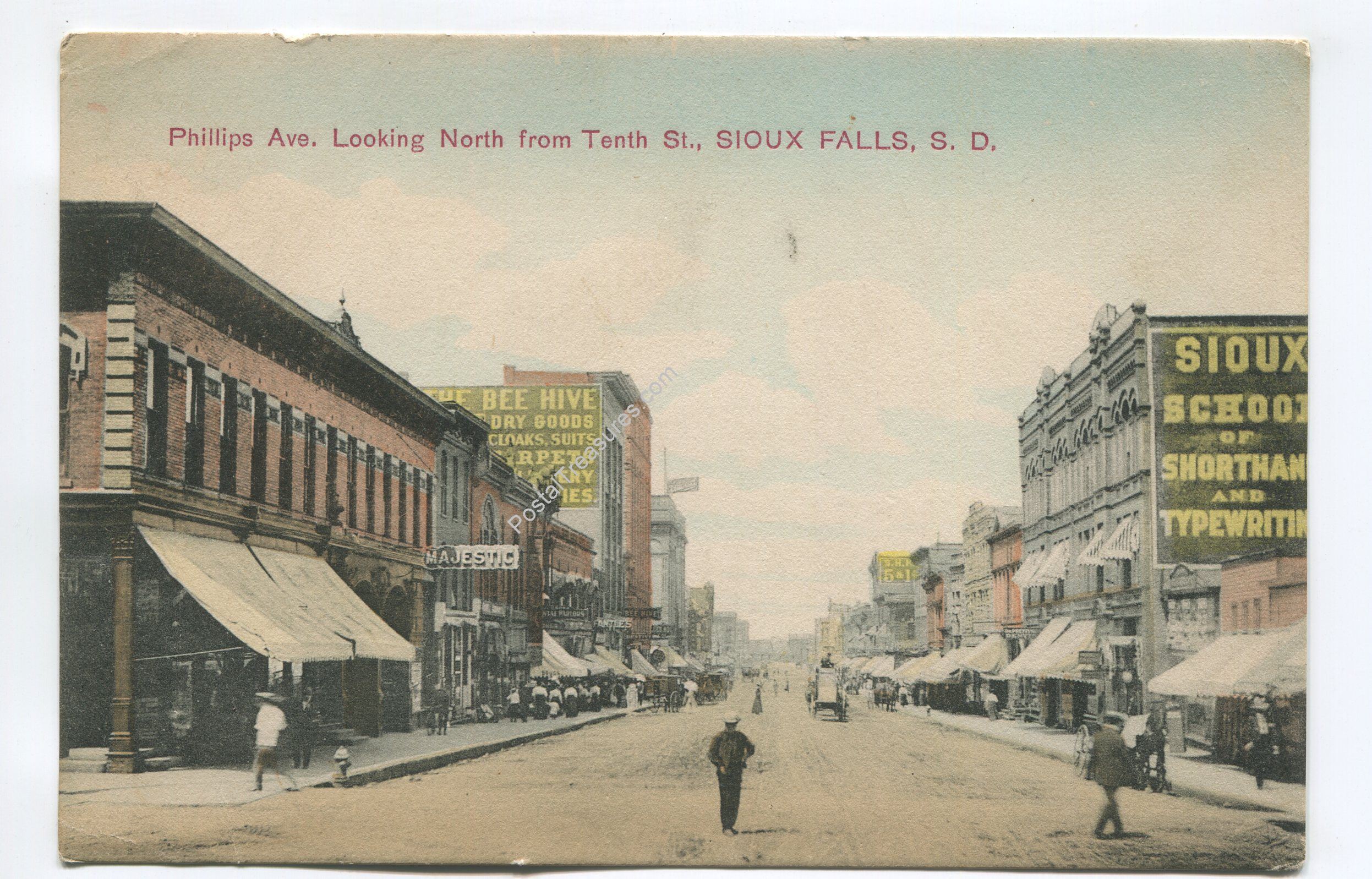 Phillips Ave Looking North from Tenth Street Sioux Falls South Dakota postcard