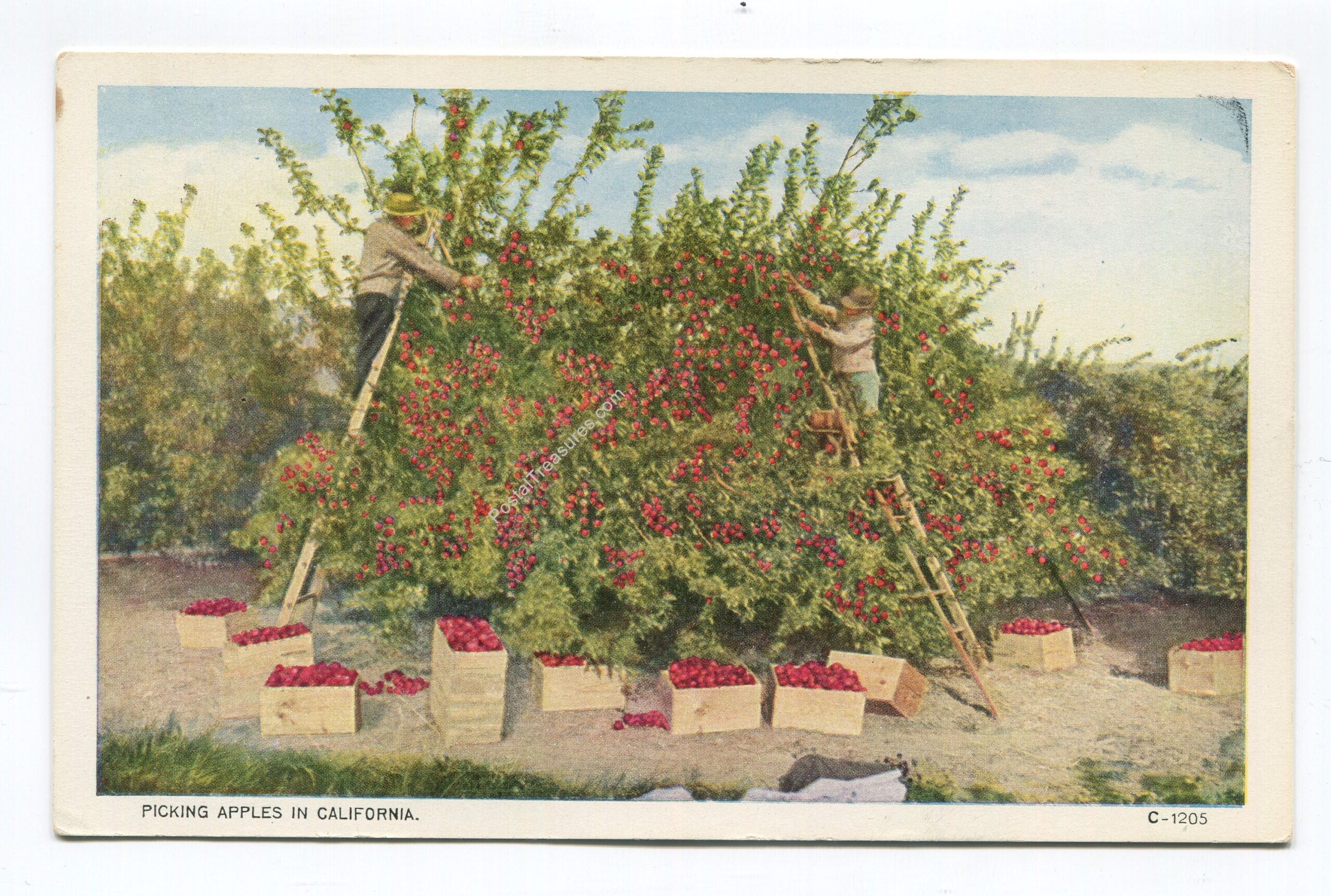 Picking Apples in California postcard