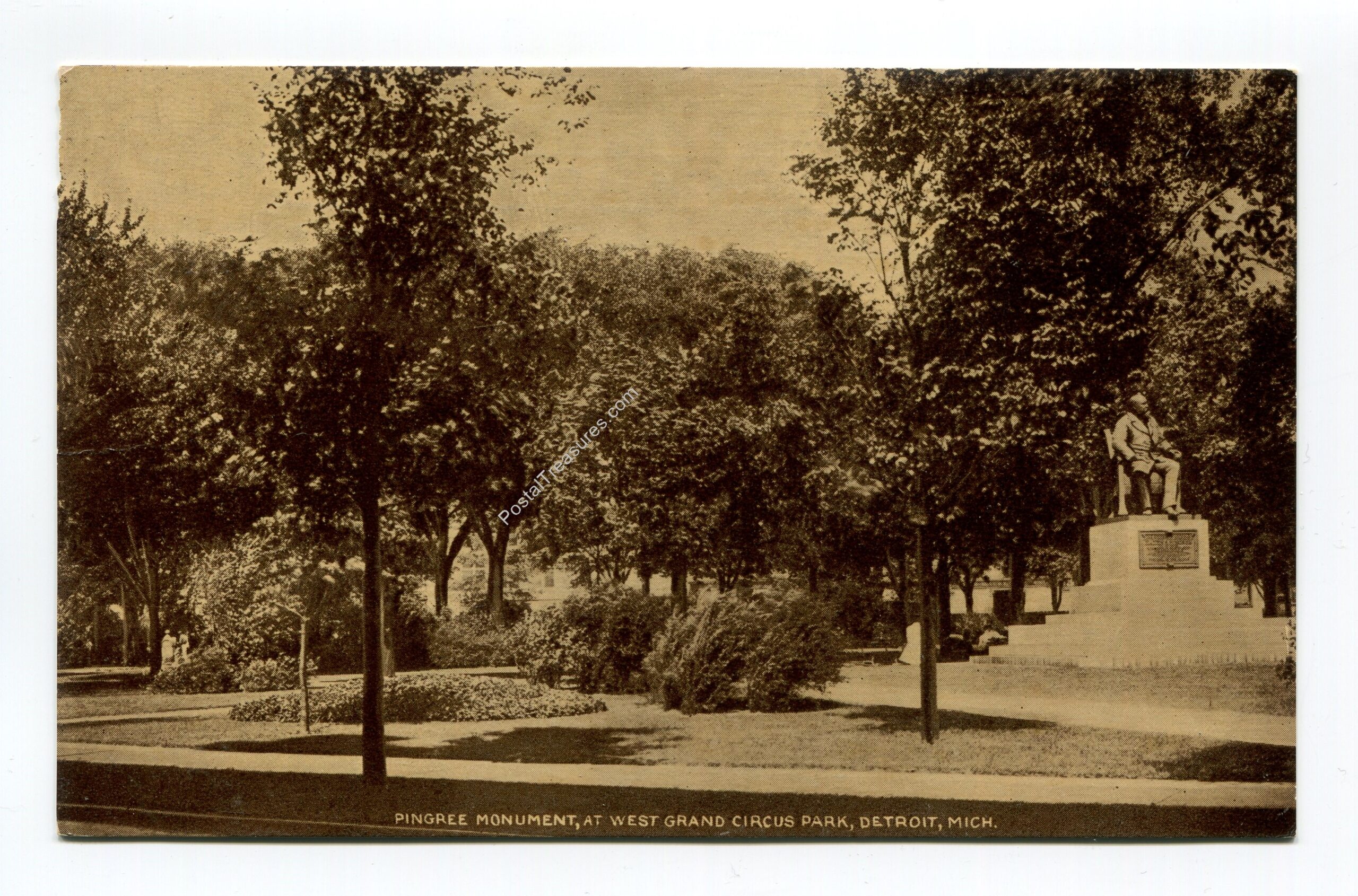 Pingree Monument at West Grande Circus Park Detroit Michigan postcard