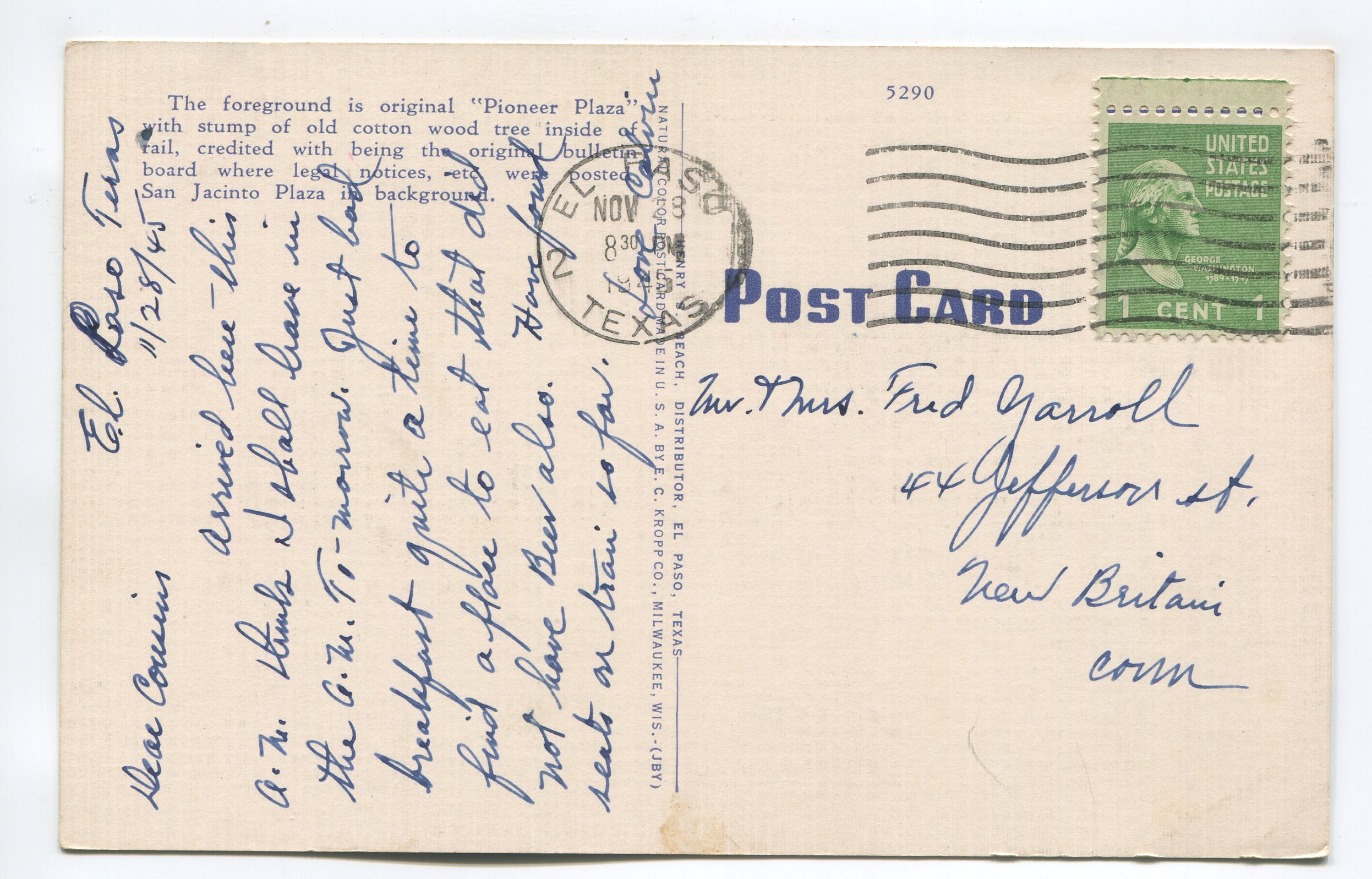 Pioneer Plaza The Hub of El Paso Texas postcard