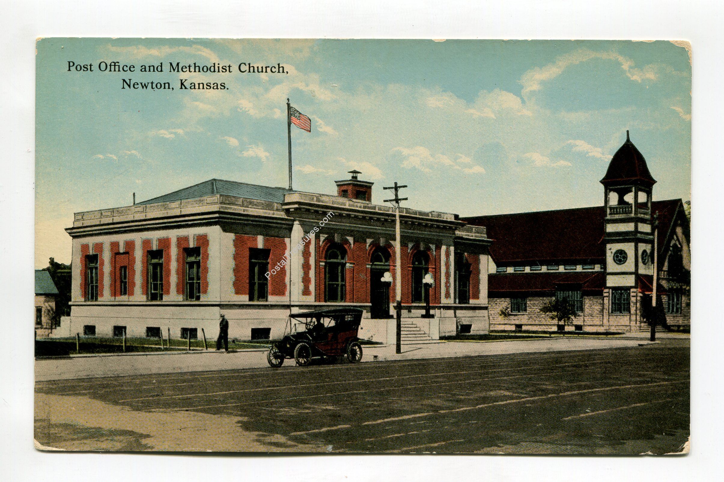 Post Office and Methodist Church Newton Kansas postcard