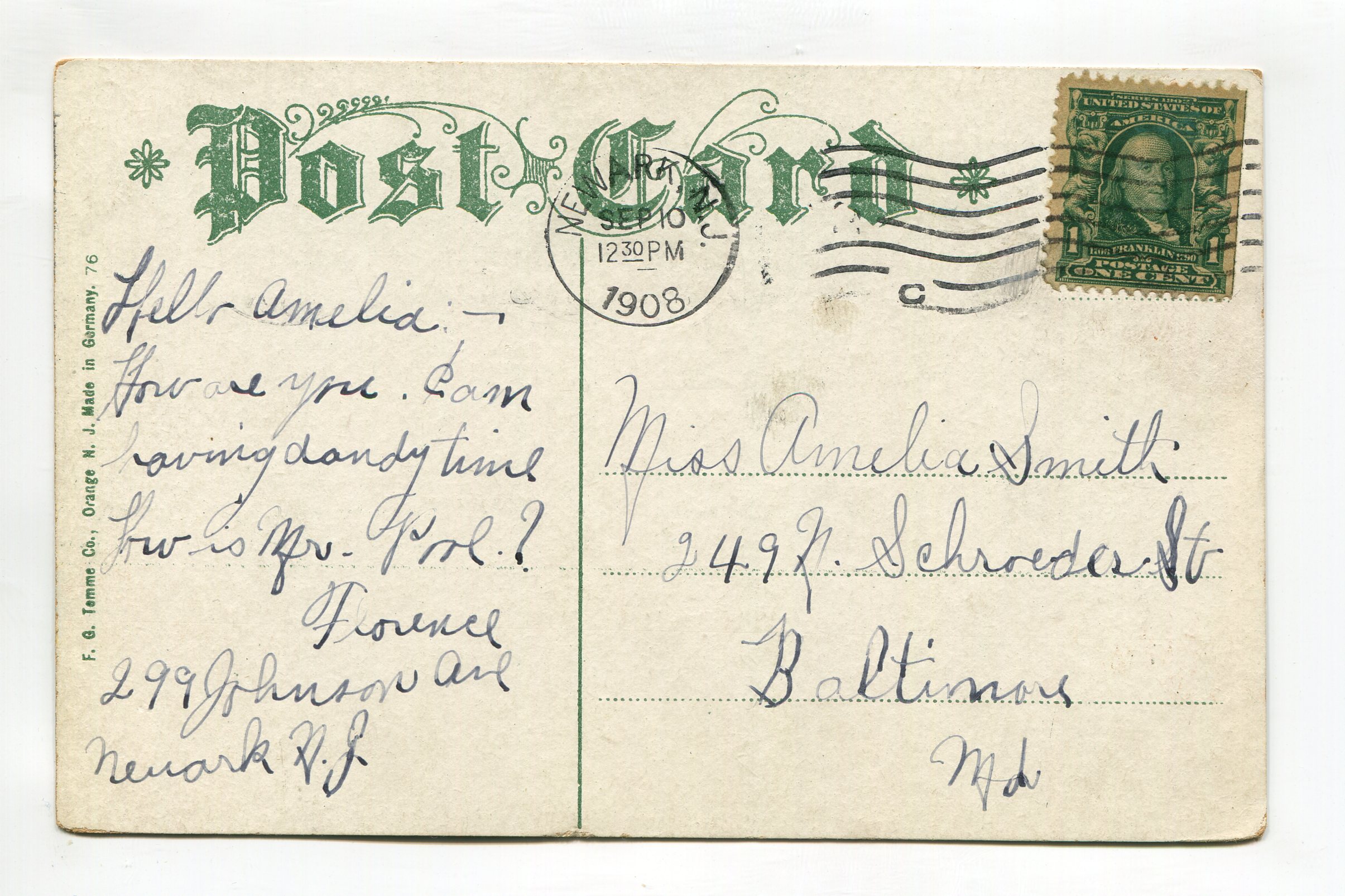 Condition – noticeable corner/edge wear, cancellation impression visible on card front, album impression marks around corners, soiling/marks