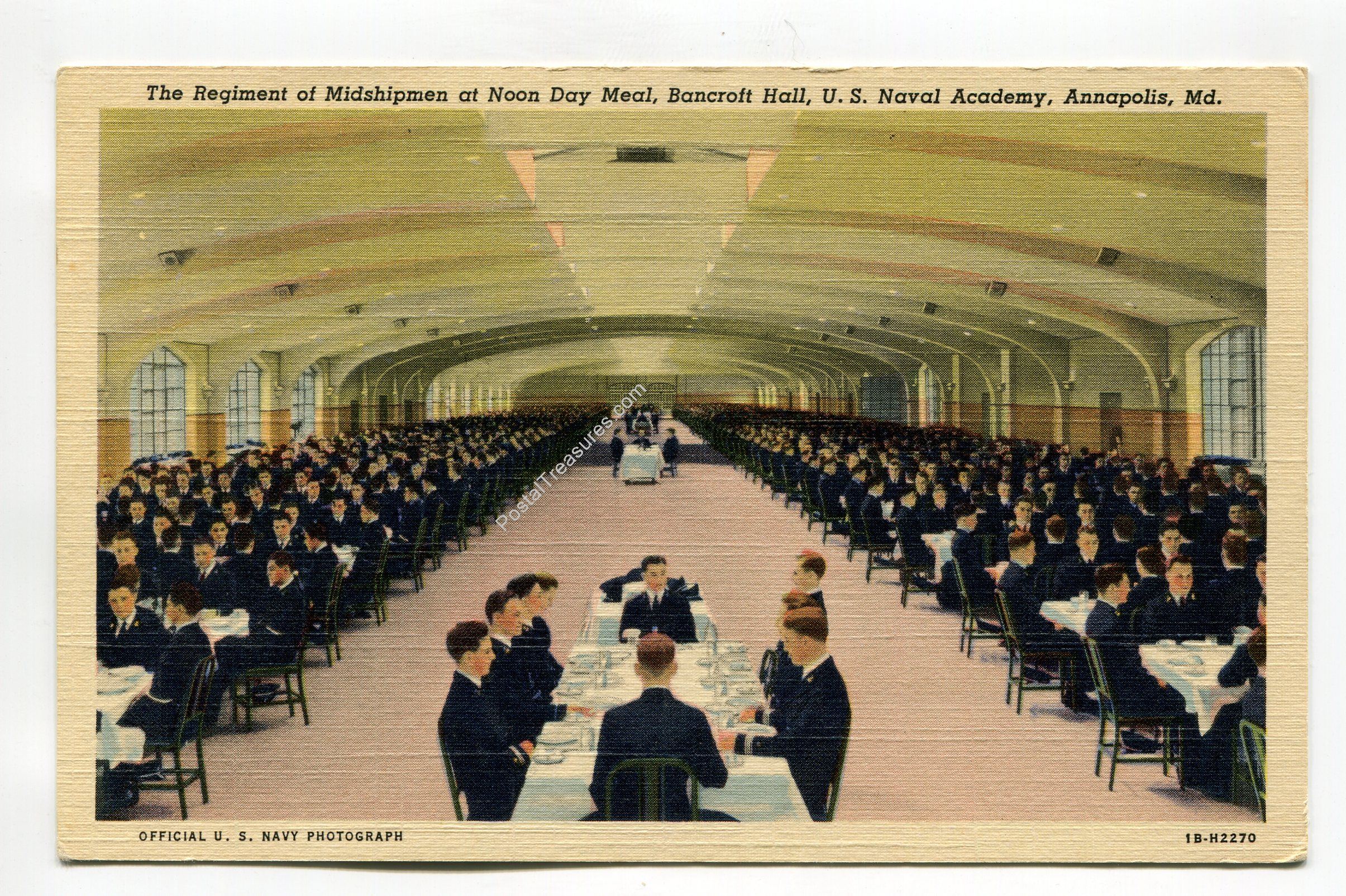 Regiment of Midshipmen at noon day meal Bancroft Hall US Naval Academy Annapolis Maryland postcard