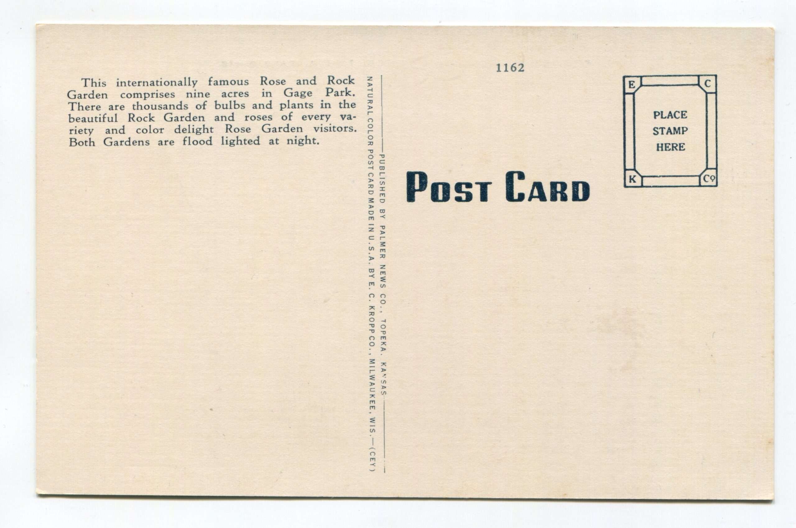 Reinisch Memorial Rock Garden Topeka Kansas postcard