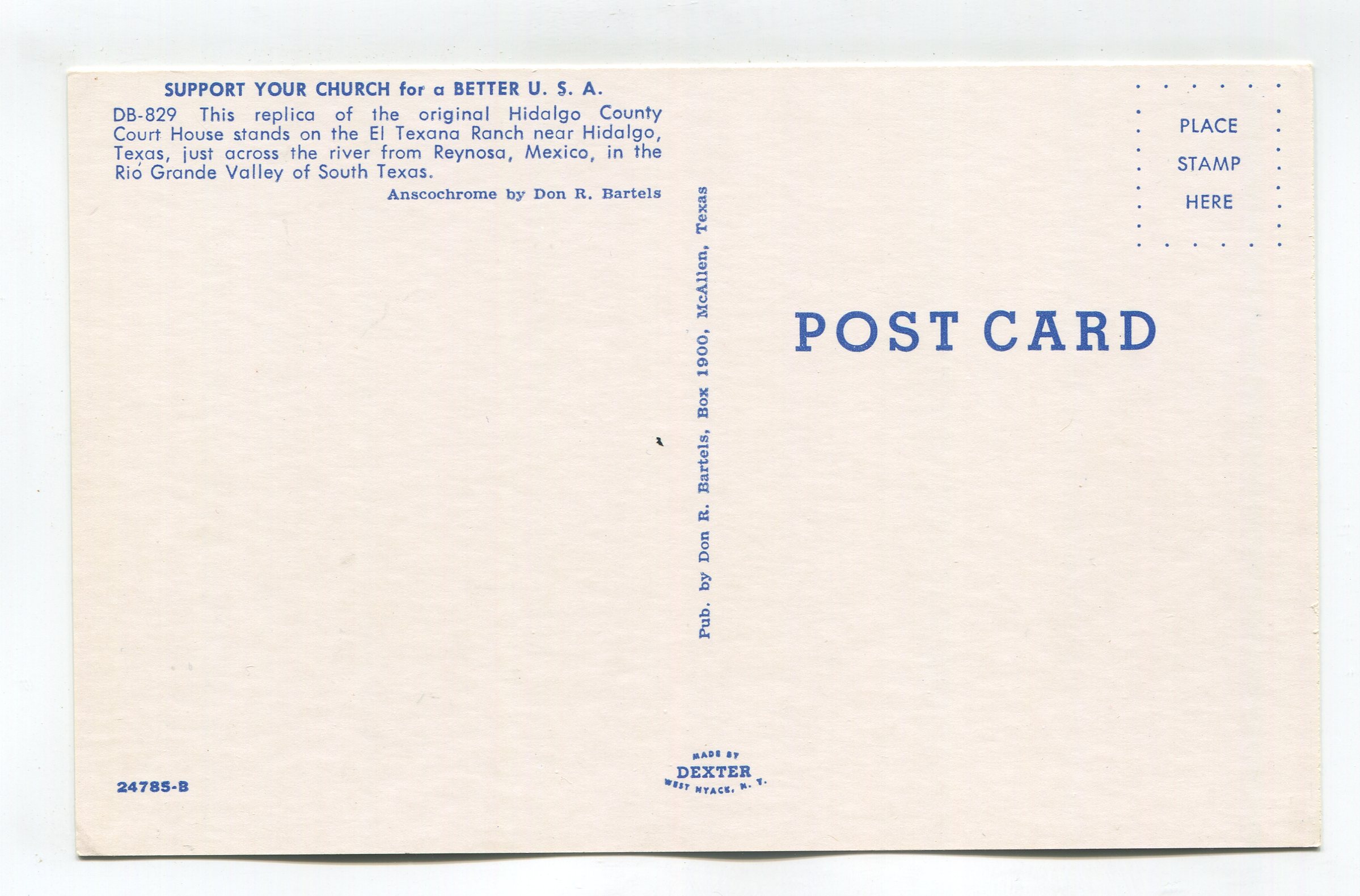 Replica of original Hidalgo County Court House El Texana Ranch Texas postcard