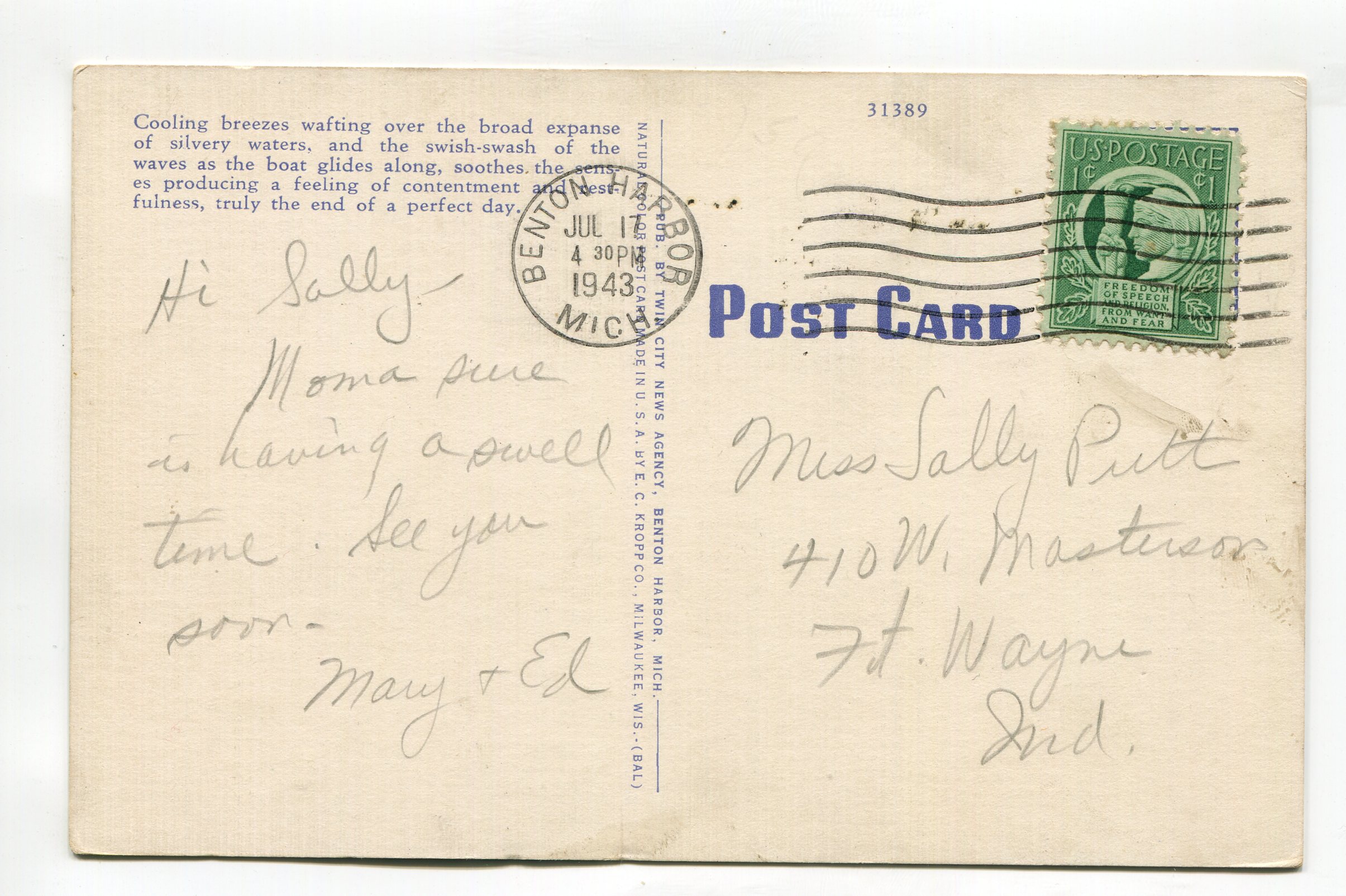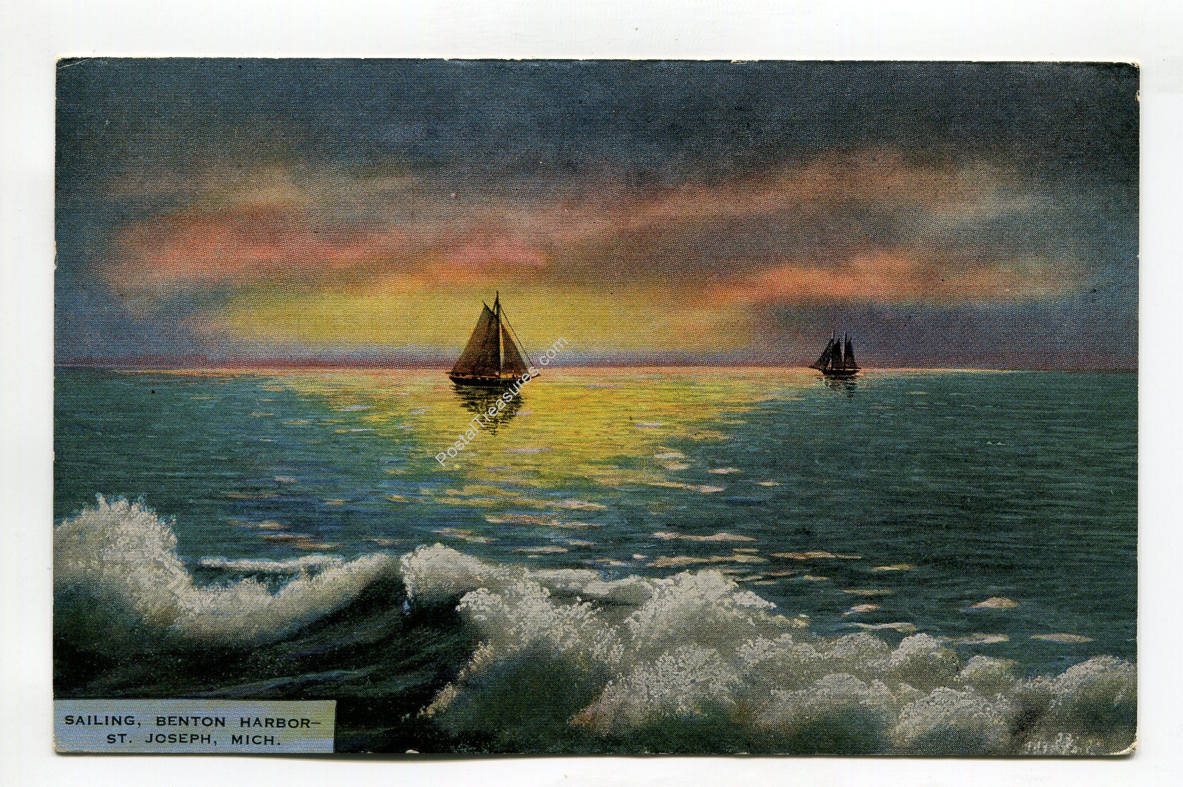 Sailing Benton Harbor – St Joseph Michigan postcard
