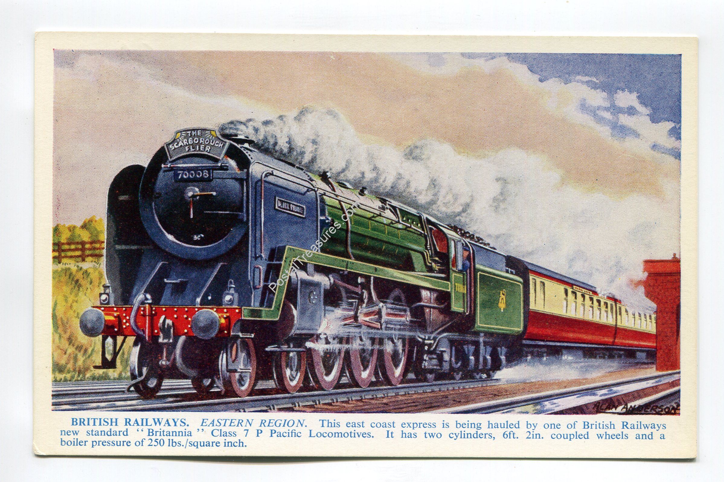 Scarborough Flier Locomotive Britannia Class 7 British Railways Eastern Region postcard