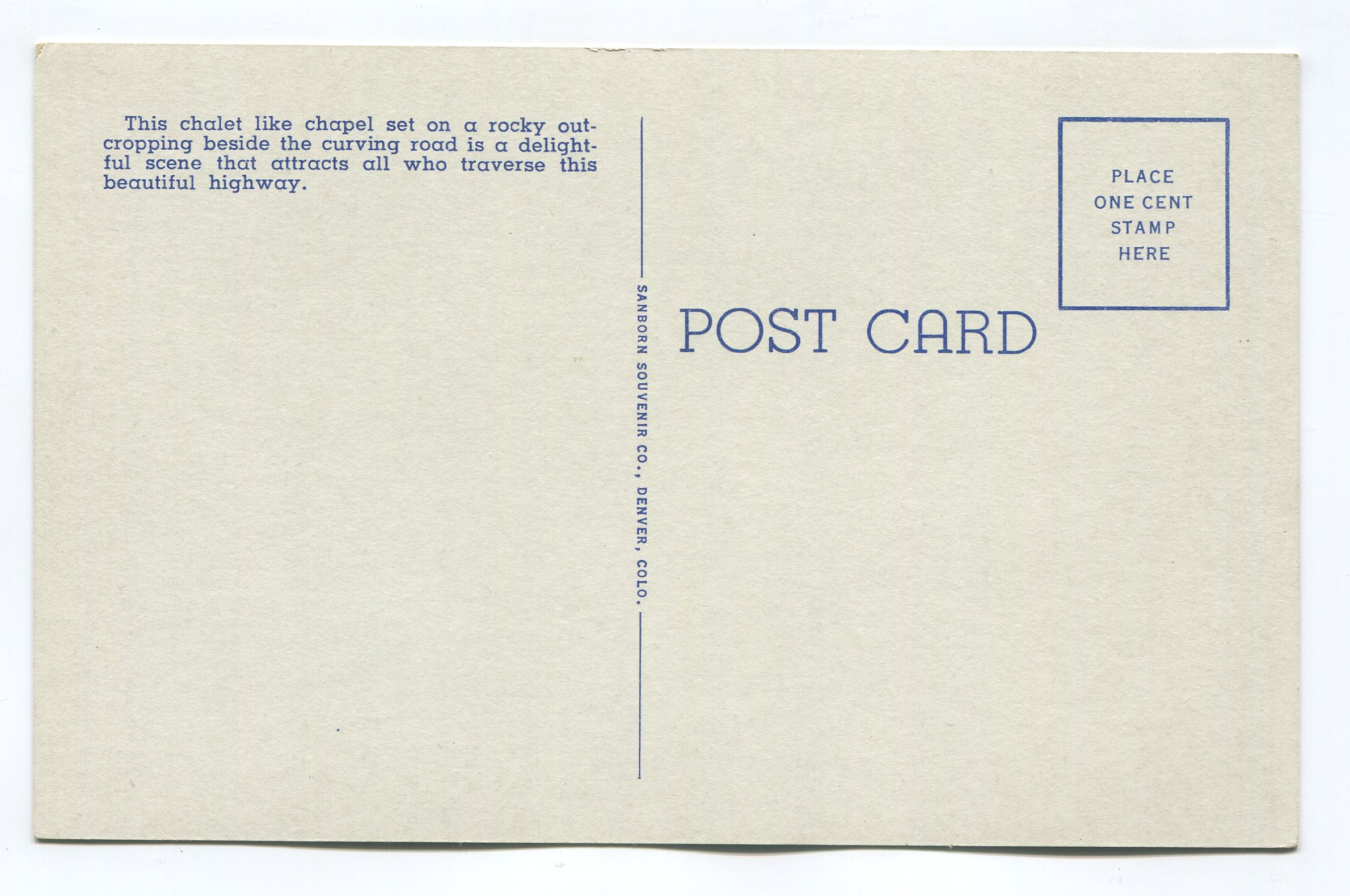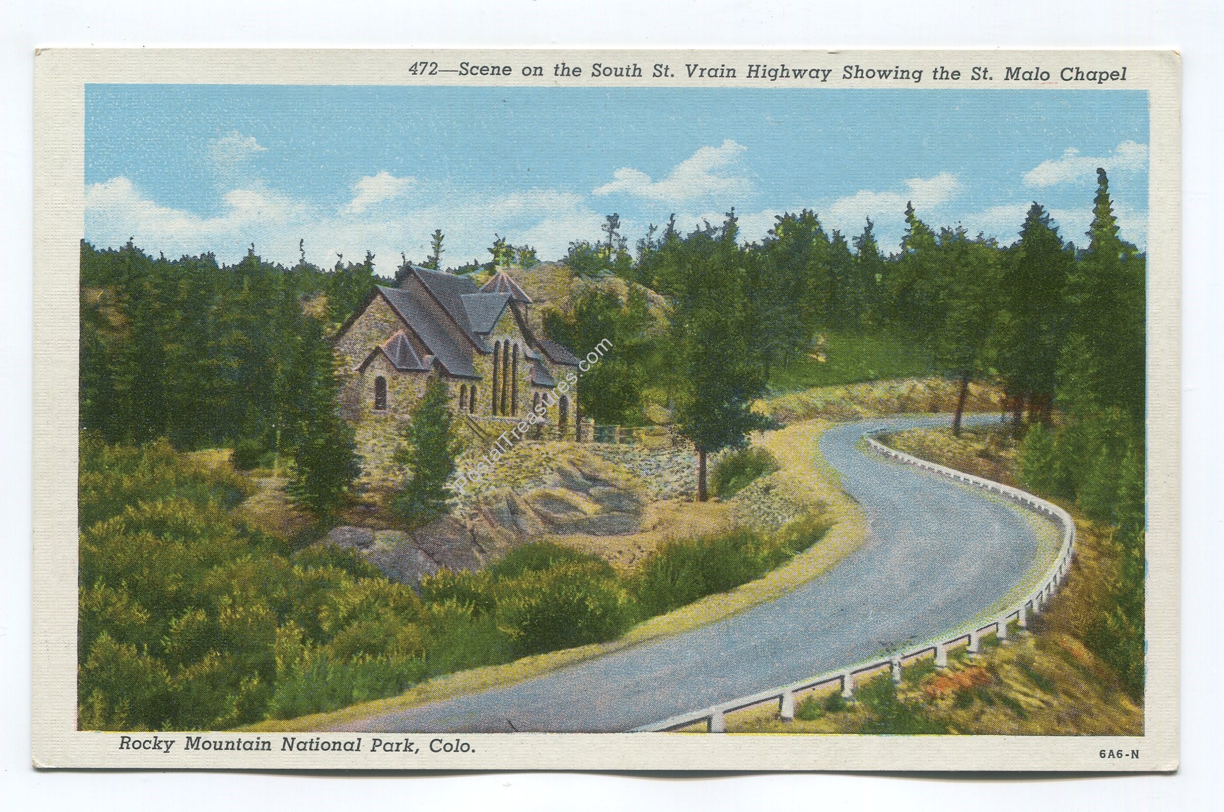 Scene on South St Vrain Highway Showing St Malo Chapel Rocky Mountains National Park Colorado postcard