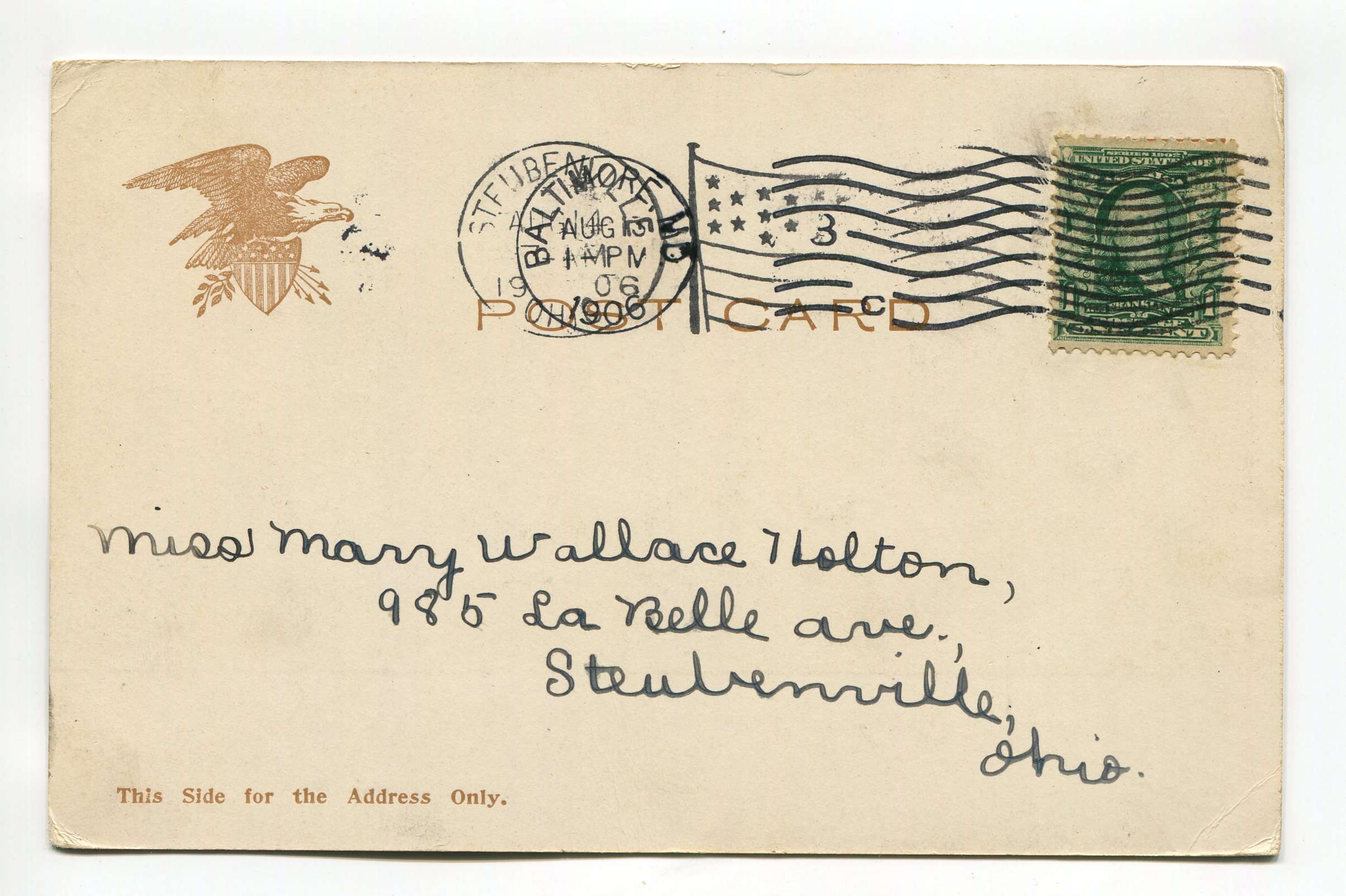 Condition – noticeable corner/edge wear, crease in corners and in top edge left of center, cancellation mark on front, soiling/marks