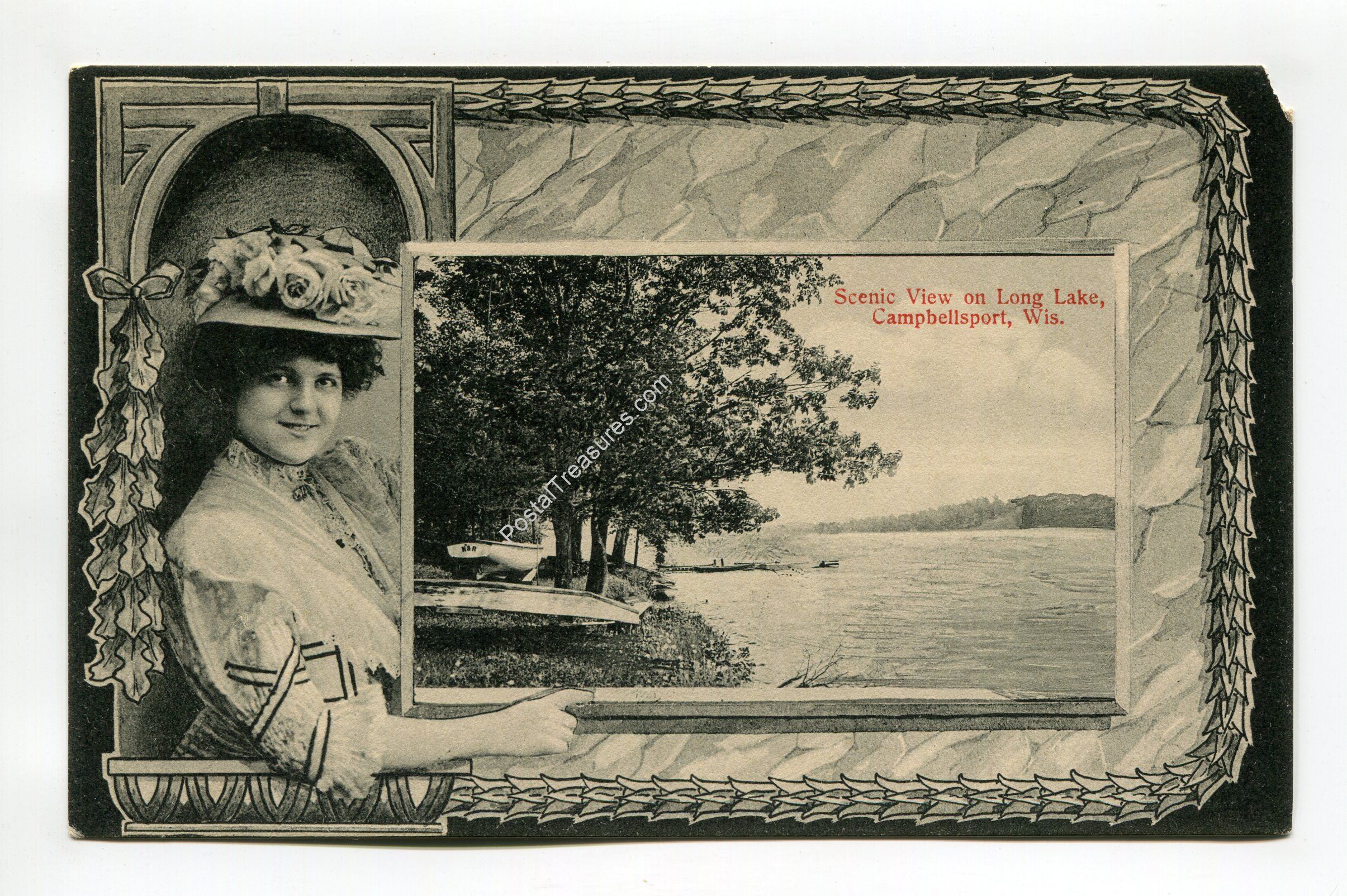 Scenic View on Long Lake Campbellsport Wisconsin postcard