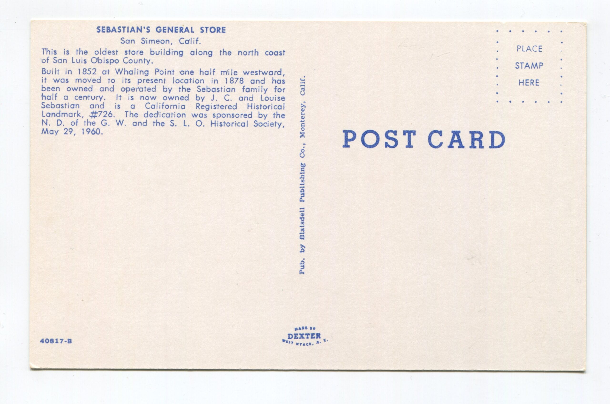 Sebastian’s General Store San Simeon California postcard