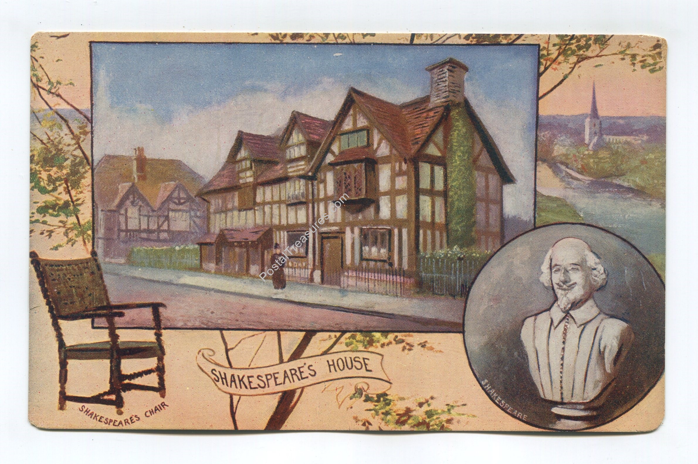 Shakespeare’s House – Shakespeare Bust – Shakespeares Chair postcard