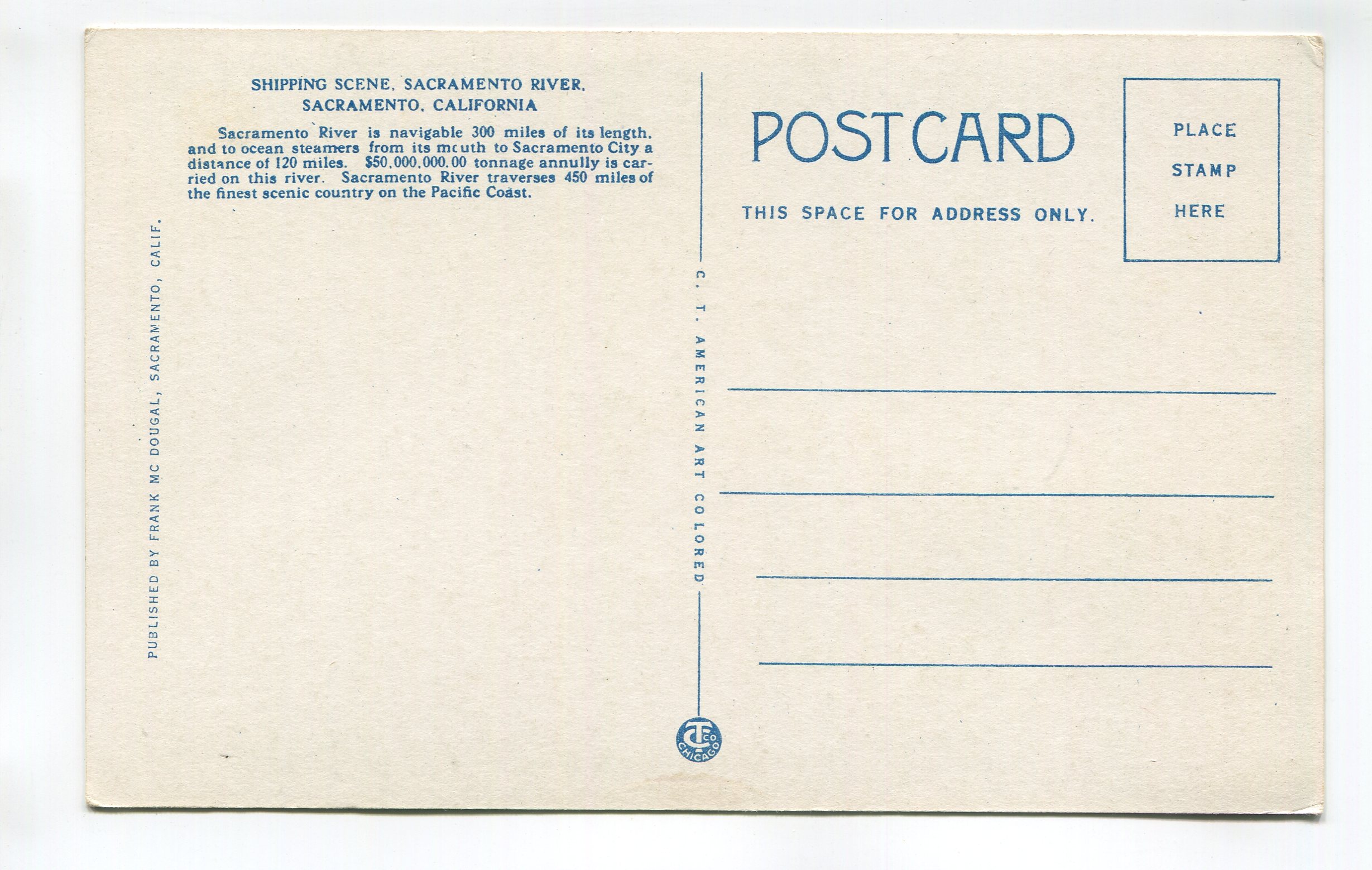 Shipping Scene Sacramento River Sacramento California postcard