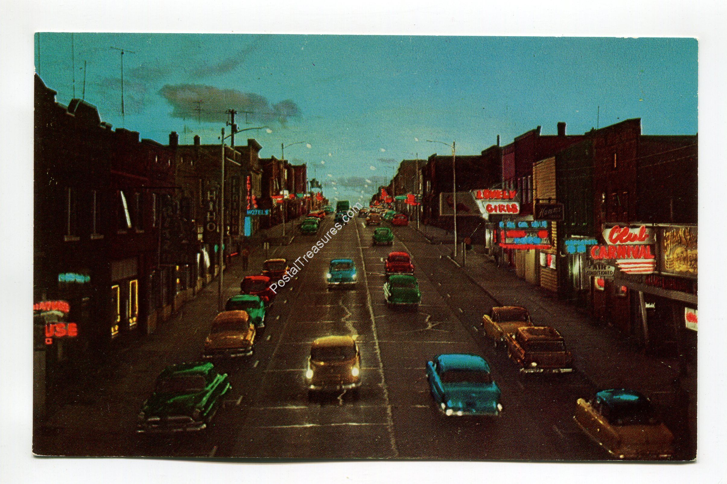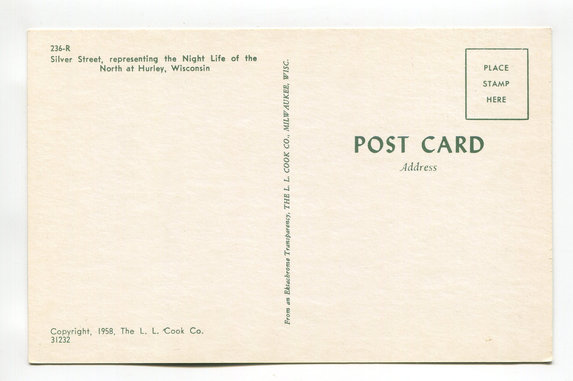 Silver Street night life of the north at Hurley Wisconsin postcard